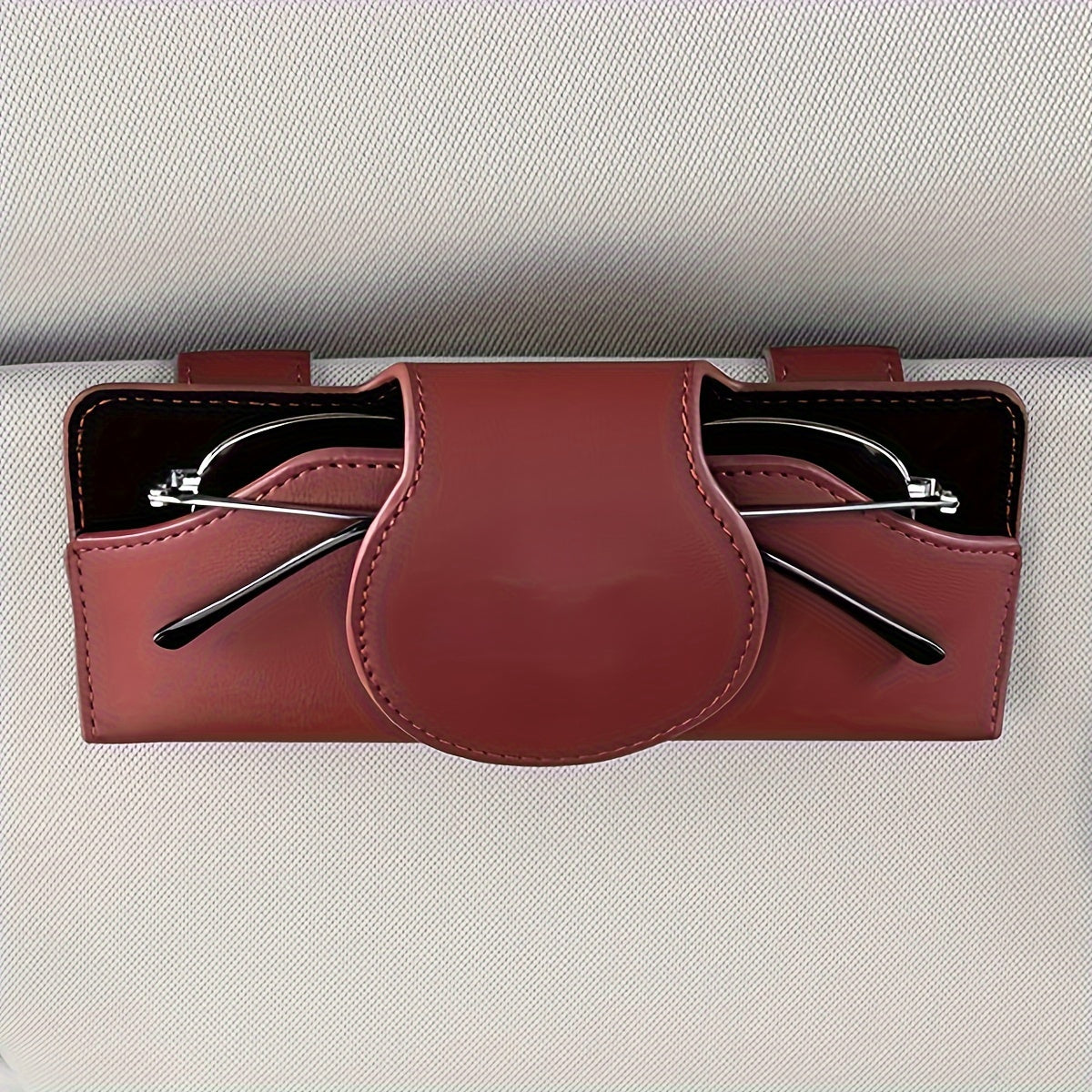 Car Visor Glasses Holder with Magnetic Closure PU Leather Eyeglasses Organizer Vehicle Sun Visor Storage Clip