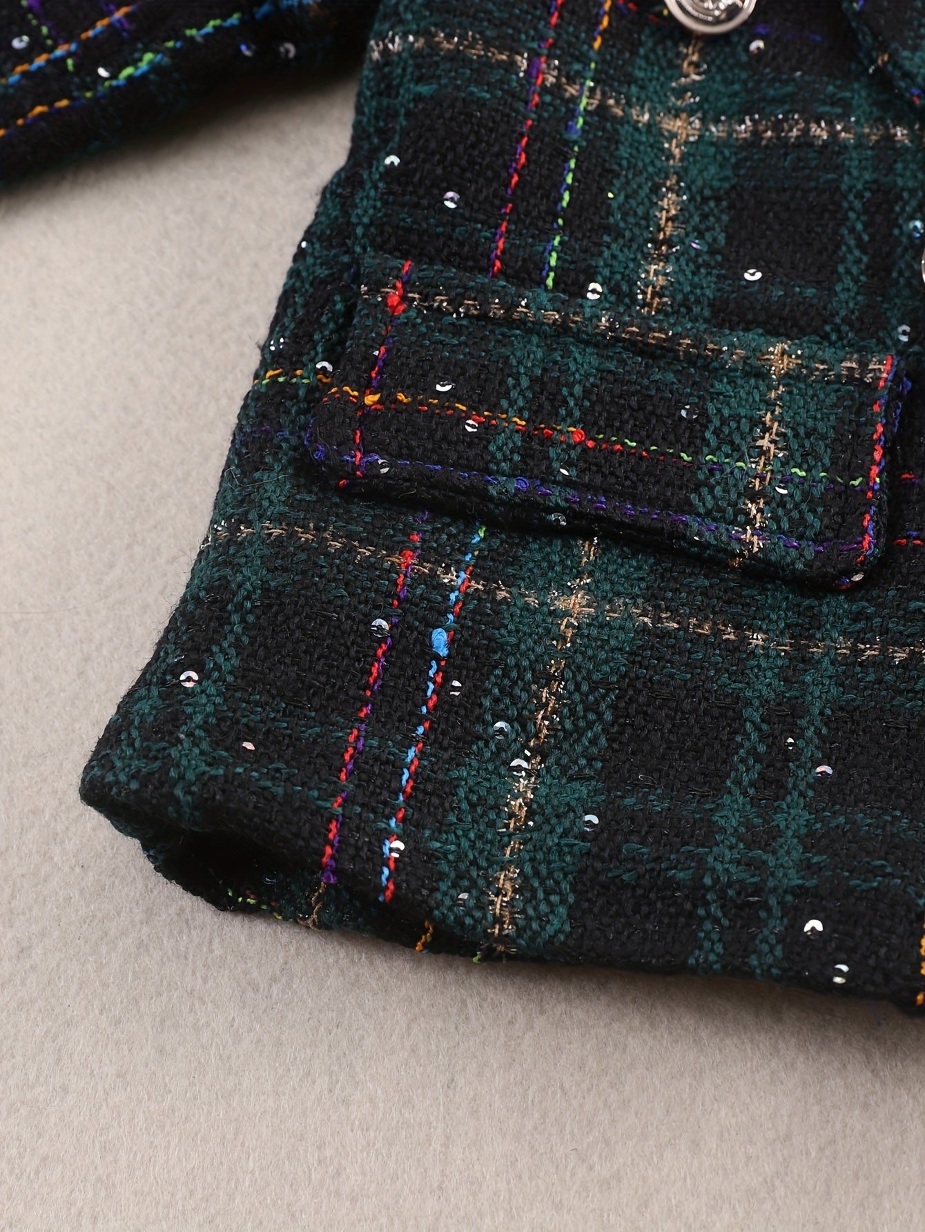 Children's Bee-Patterned Tweed Blazer and Shorts Set for Girls Fall and Spring