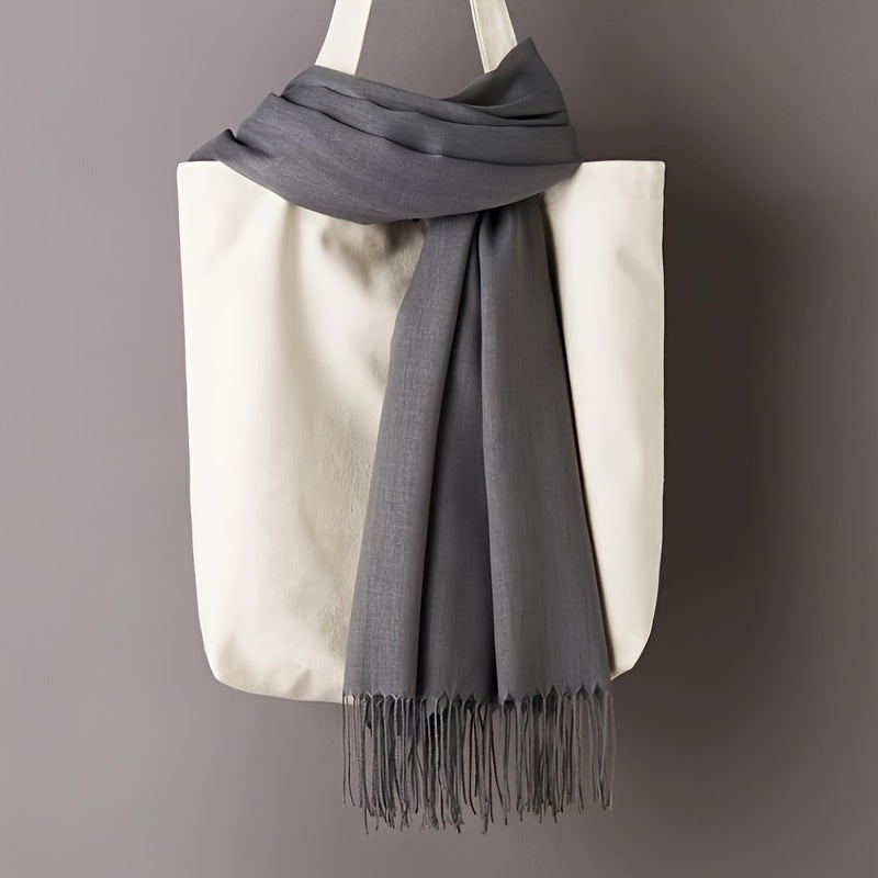 Unisex Solid Color Wool Scarf with Tassels Warm Winter Autumn Accessory