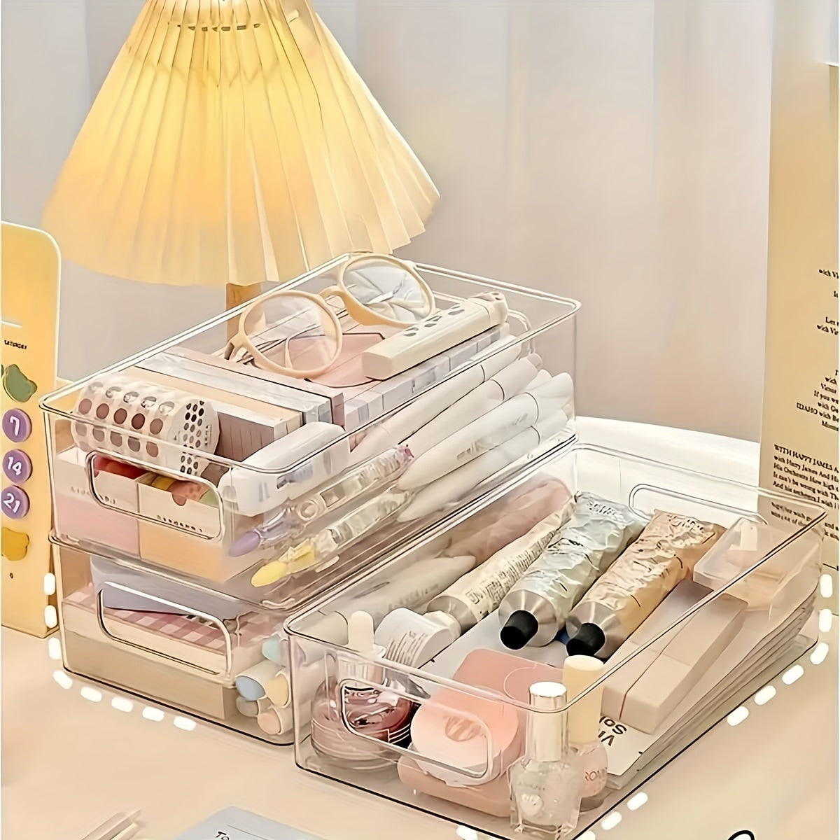 Clear Plastic Storage Bins with Handles Stackable Desktop Organizer Drawers for Home Office