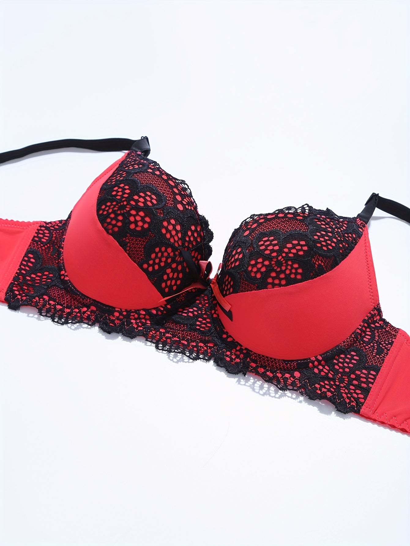 Colorblock Lace Lingerie Set with Bow Details and Push-Up Bra