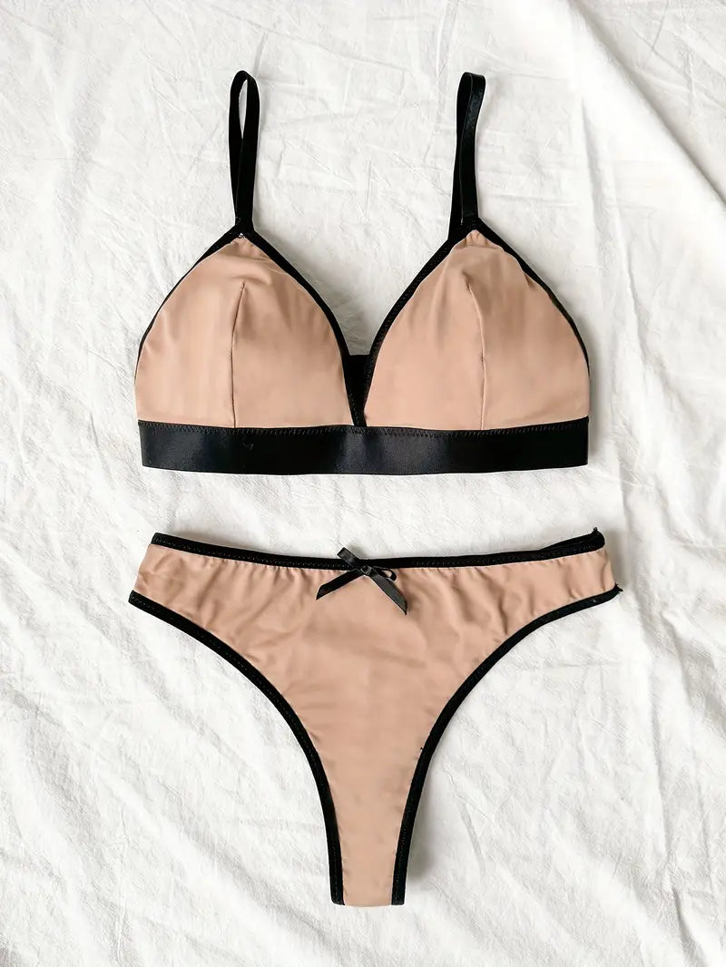 Nylon Elastane Lingerie Set Wireless Triangle Bralette and Cheeky Thong