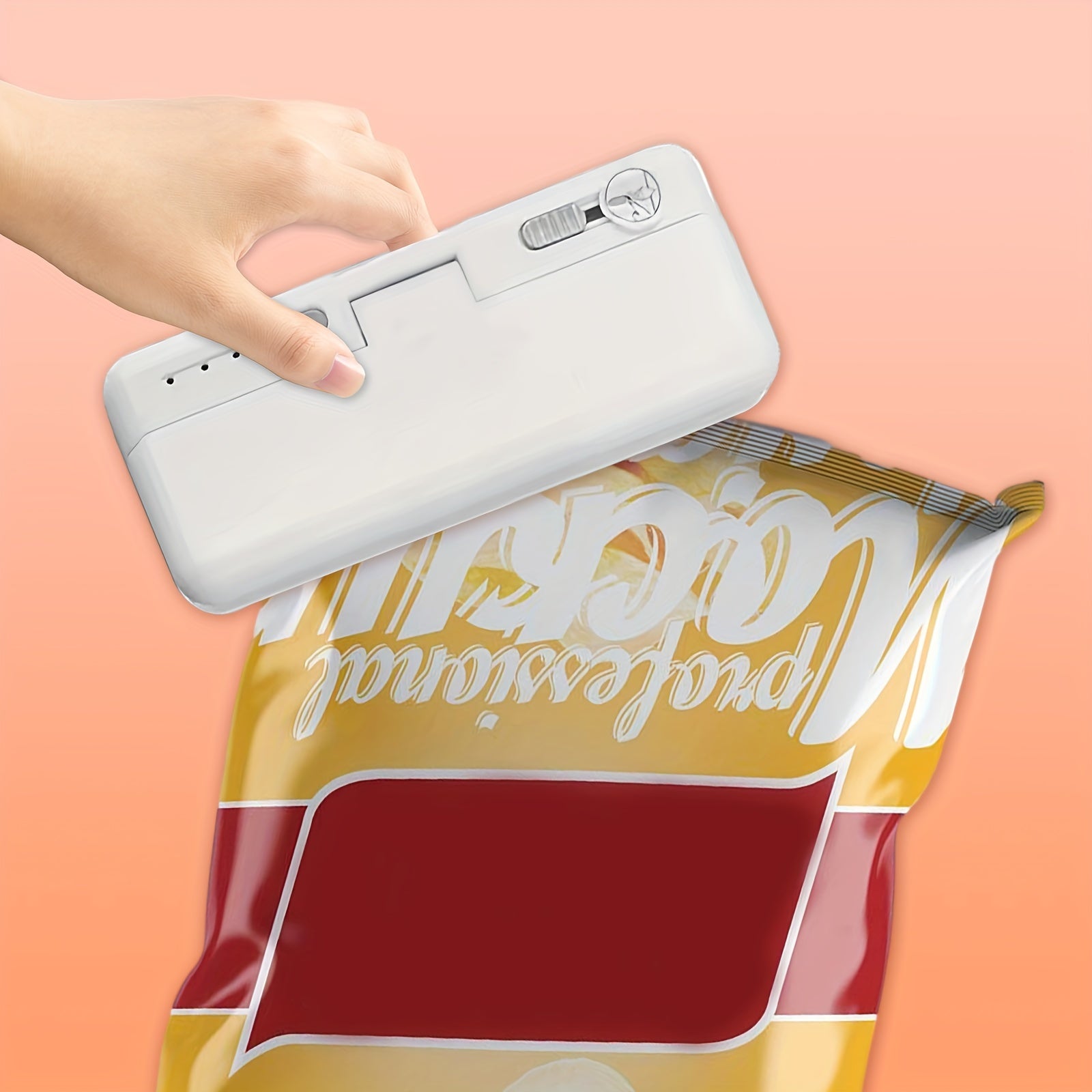 Food Sealer with Built-in Cutter USB Rechargeable Adjustable Heat Settings Magnetic Strip for Kitchen Organization