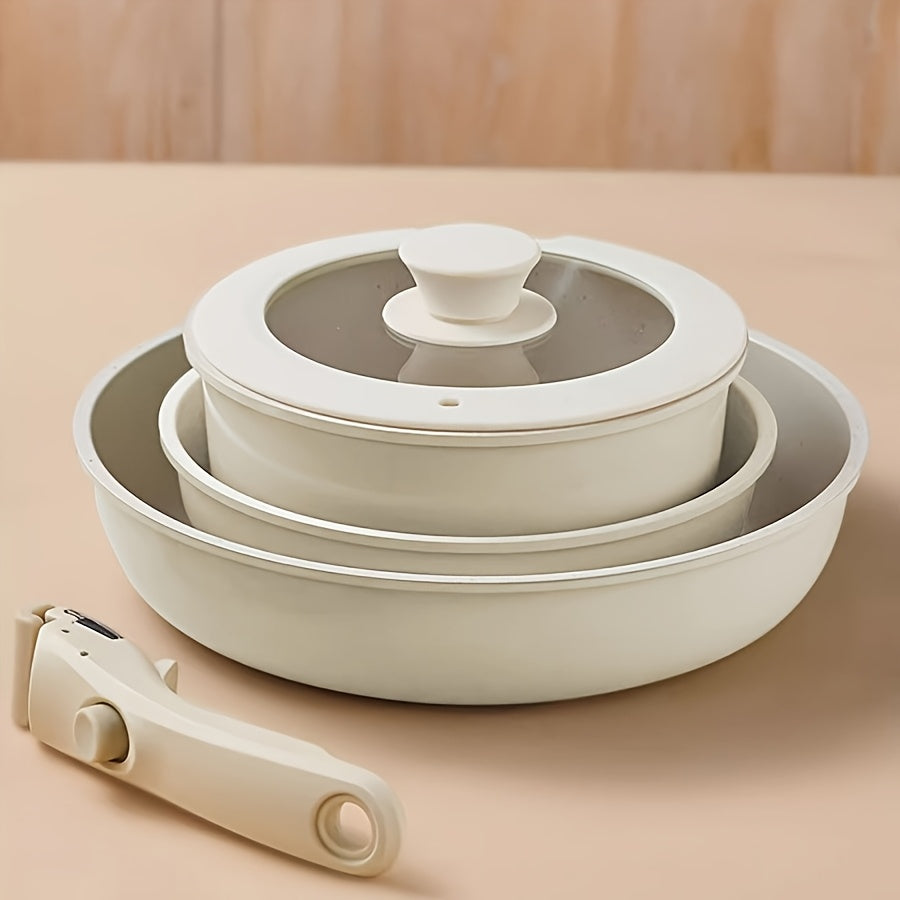 Stackable Cast Iron Cookware Set with Detachable Handles Non-Stick Coating
