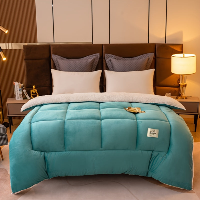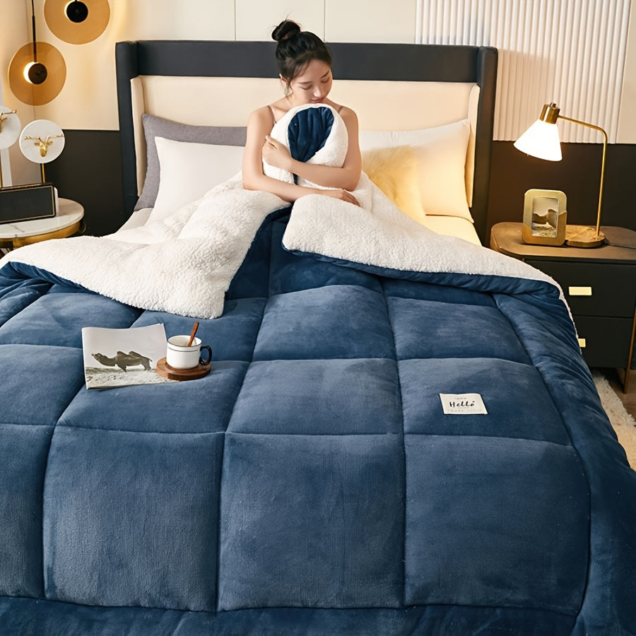Plaid Quilted Comforter Soft Cozy Milk Velvet Fleece All-Season Bedding