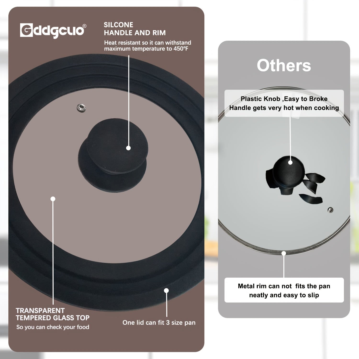 Universal Tempered Glass Pot Cover 9.5-12.5 Inch with Silicone Edge