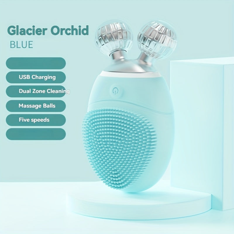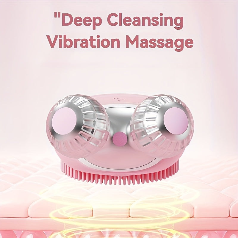 Electric Silicone Facial Cleansing Device Dual Roller 5-Speed Vibration Rechargeable