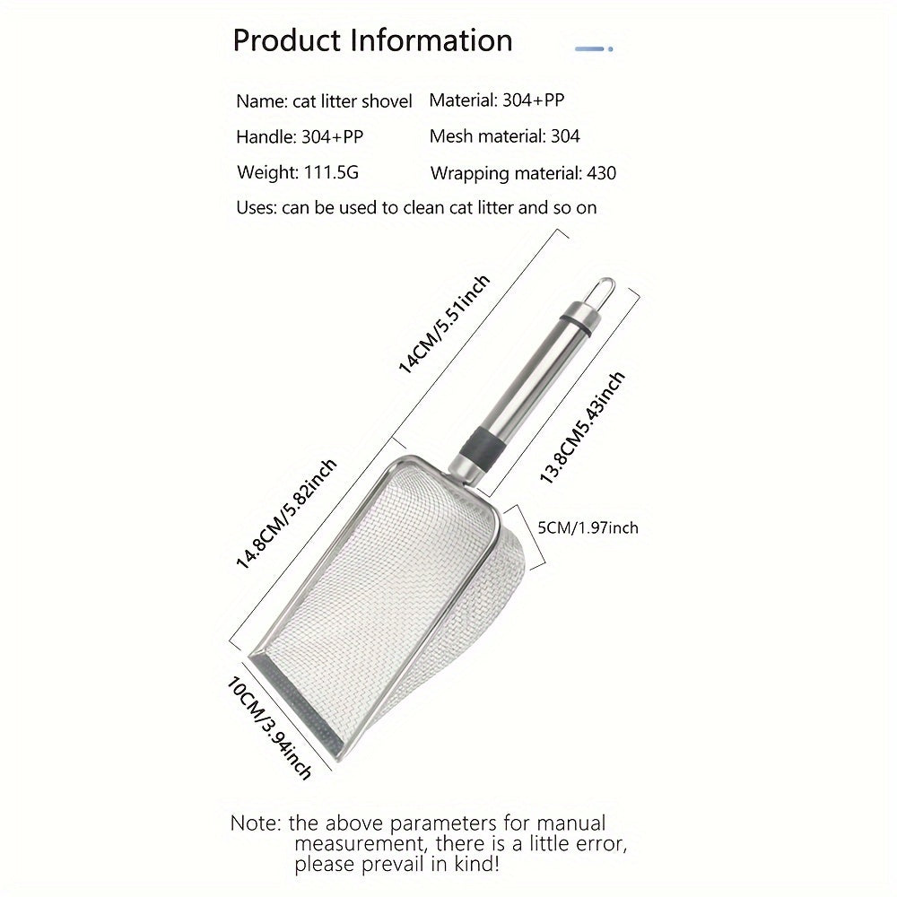 Stainless Steel Cat Litter Scoop with Fine Mesh Non-Stick Surface Easy to Clean