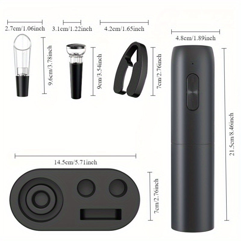 Electric Bottle Opener Set with Base, Includes Foil Cutter, Pourer, Vacuum Plug, Charger