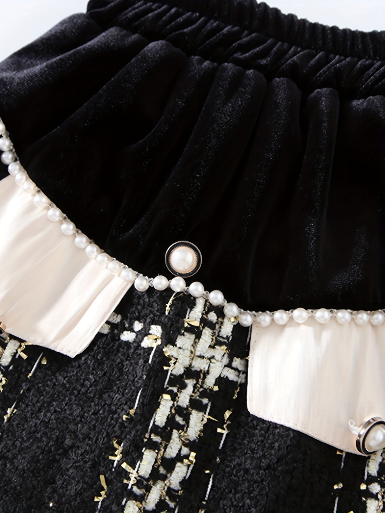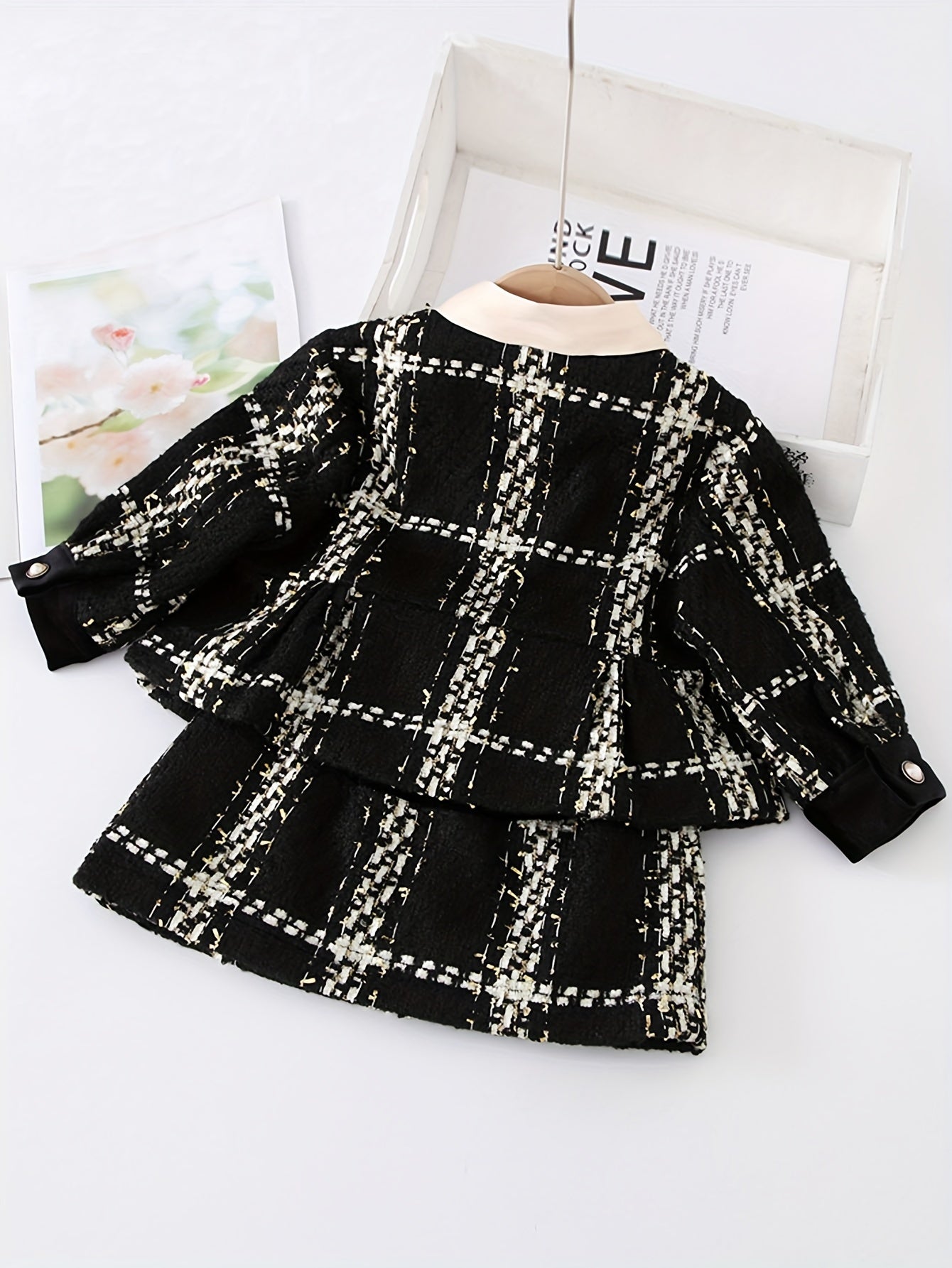 Girls Long Sleeve Tartan Suiting Set with Bow Decor for Spring Fall Activities