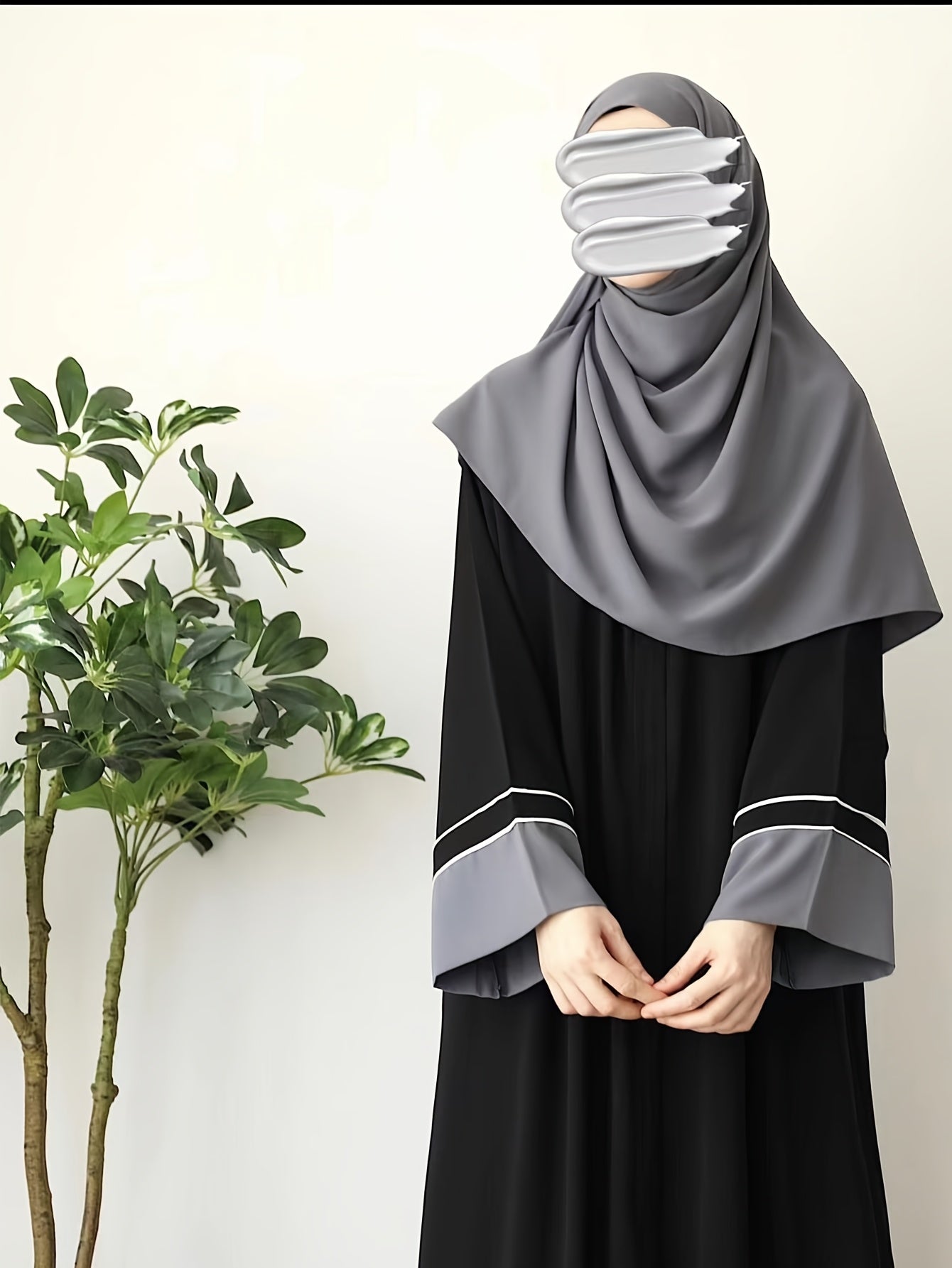 Black Abaya for Middle Eastern Muslim Women Long Sleeve Loose Fit Woven Polyester