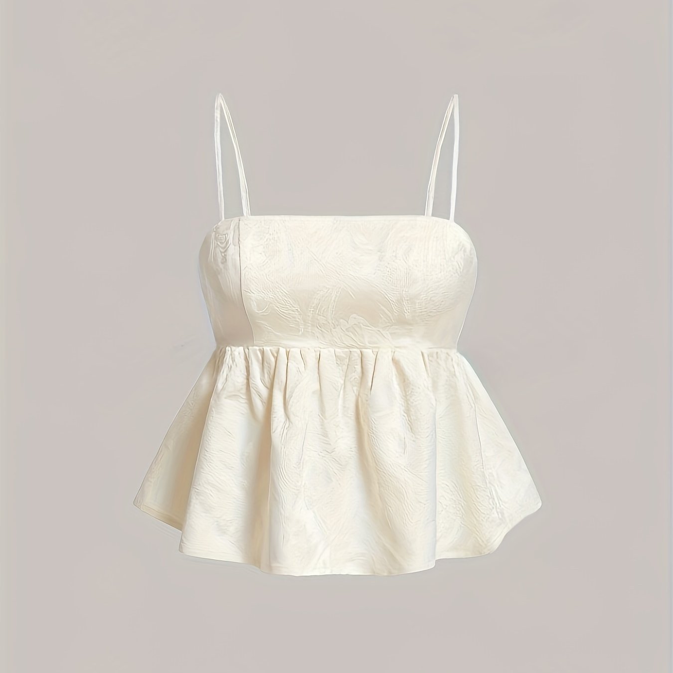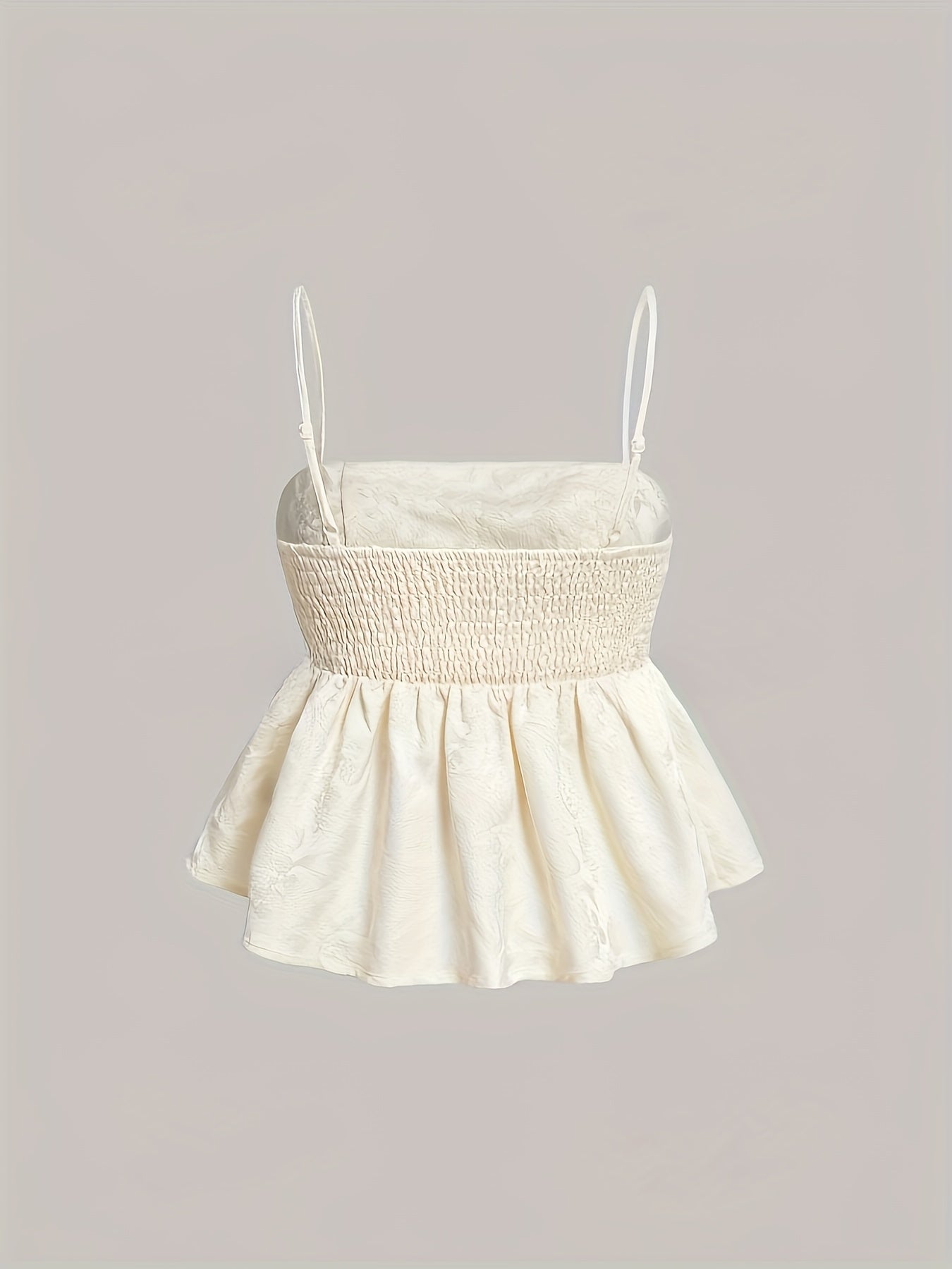 Women's Summer Floral Jacquard Ruffle Cami Top Polyester Machine Washable