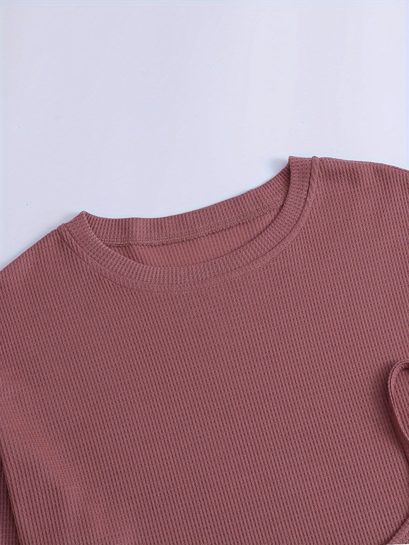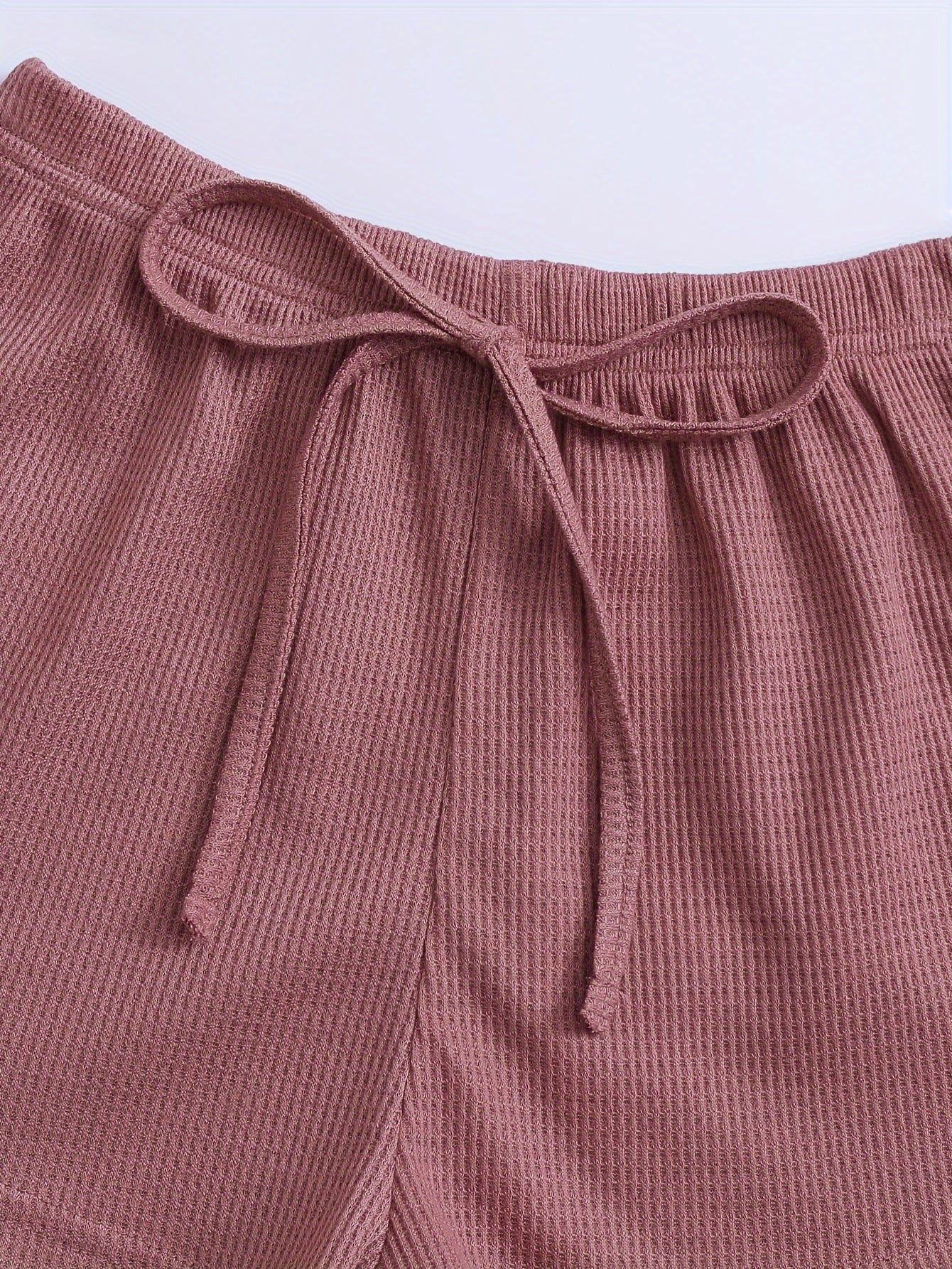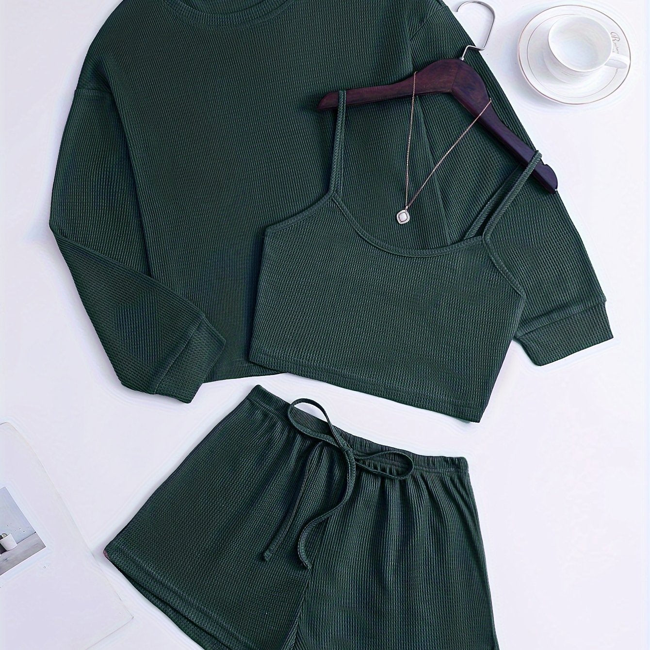 Adult Waffle Knit Pajama Set Three Piece Long Sleeve Casual Winter Fall Solid