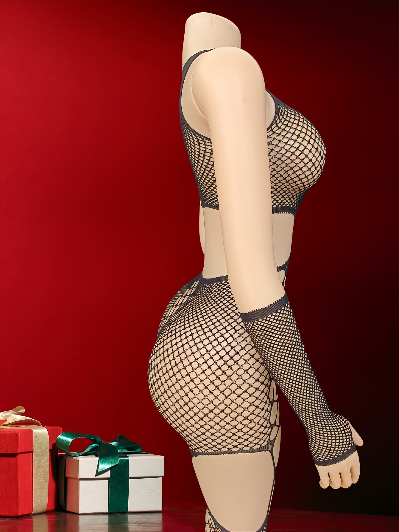Fishnet Bodysuit with Cutouts and Large Mesh, Matching Socks