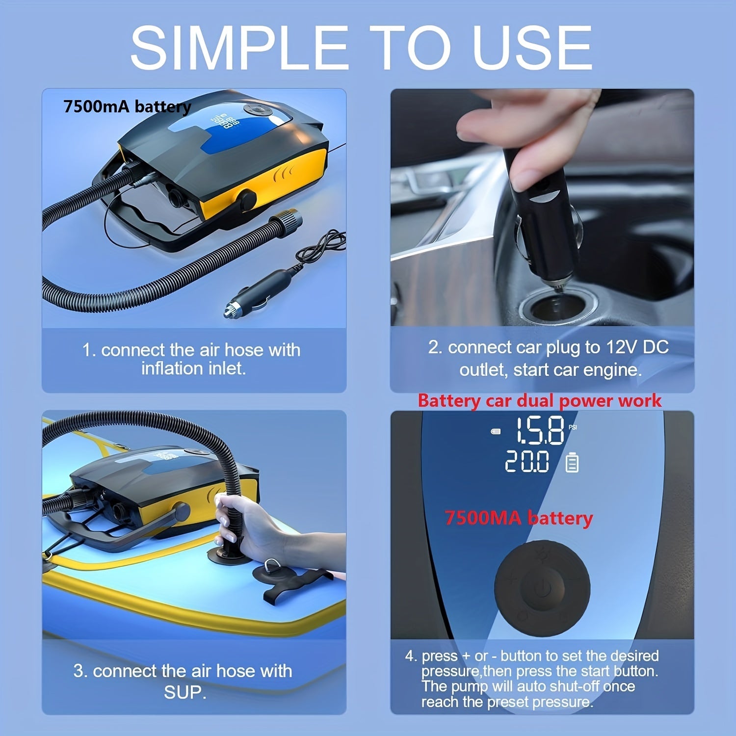 Portable Electric Air Pump with 7500mAh Battery Dual Pressure Settings for Inflatables Black and Yellow