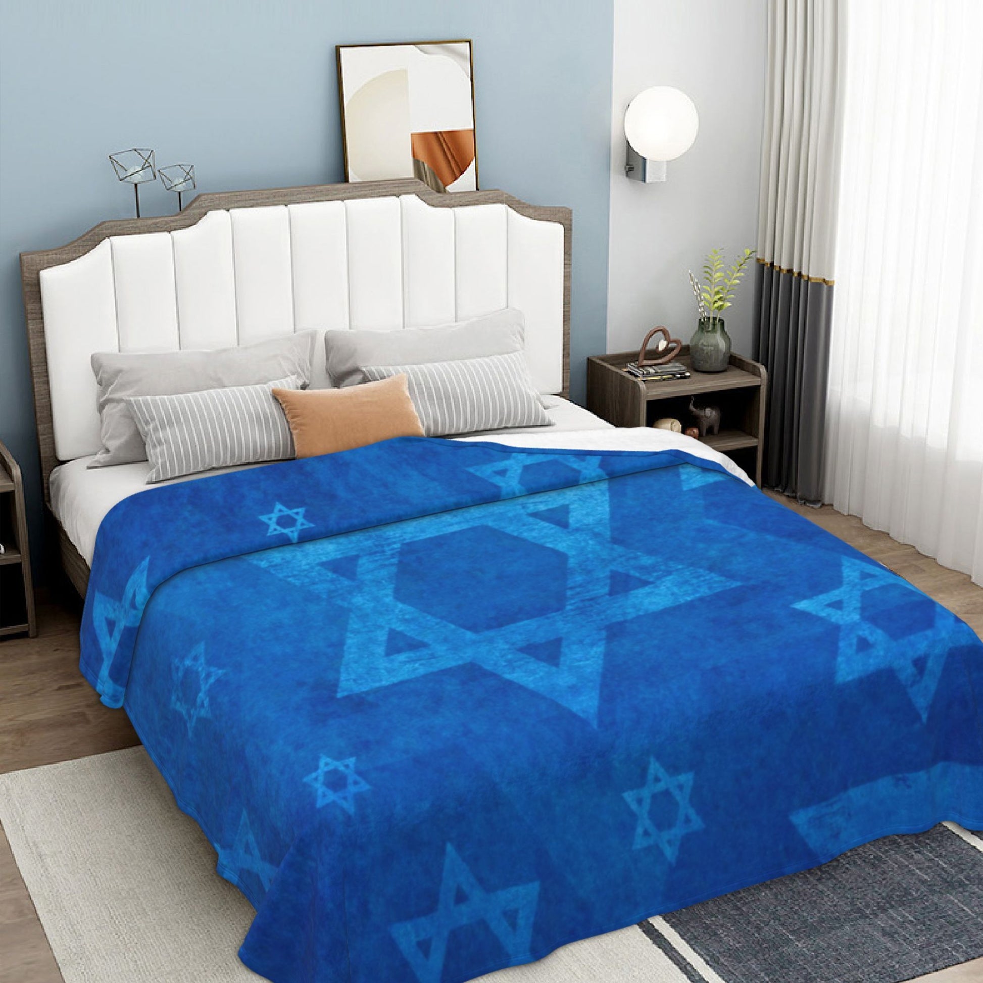 Blue Star of David Flannel Throw Blanket Non-Woven Polyester Digital Print 250-300gsm