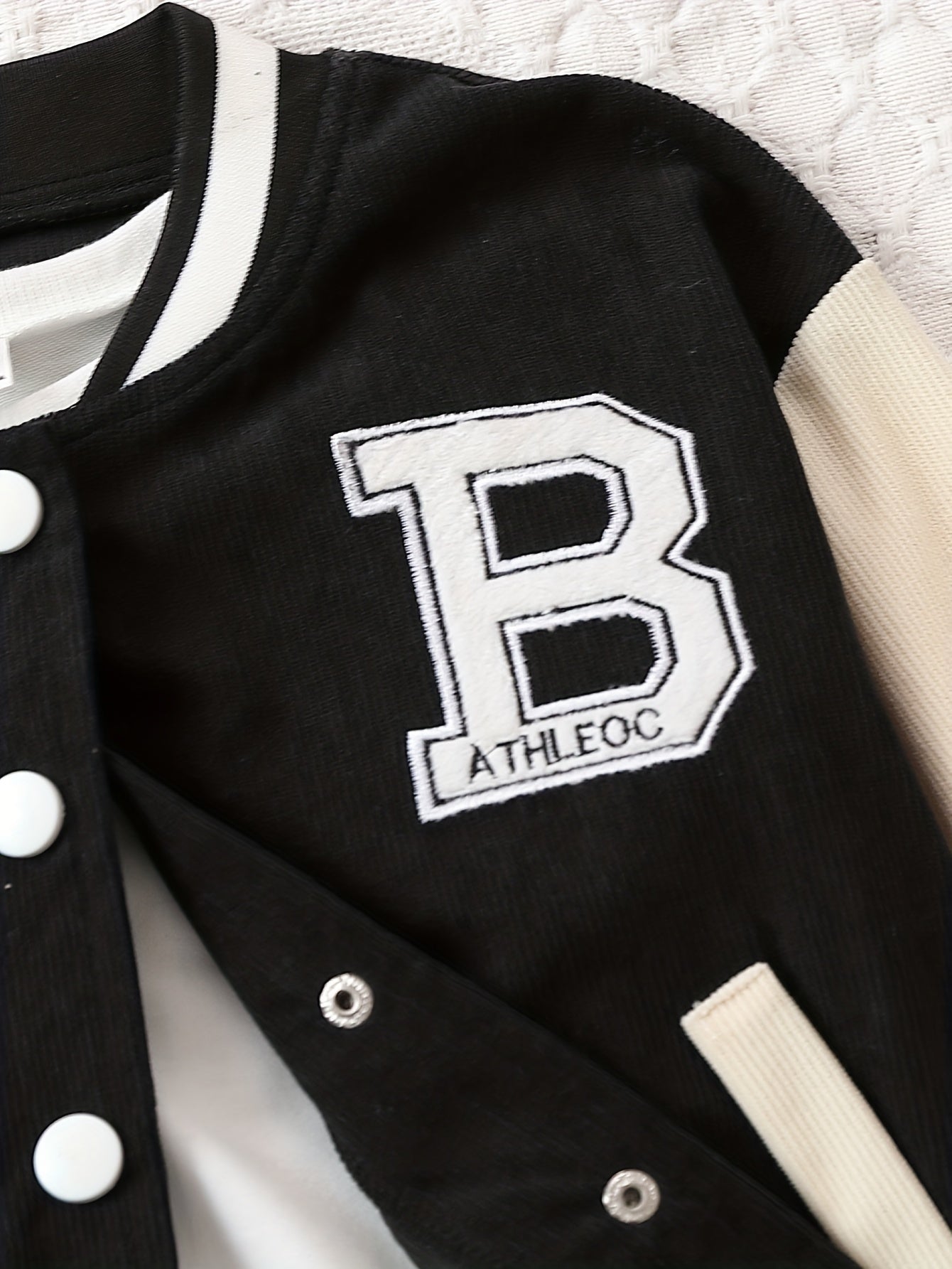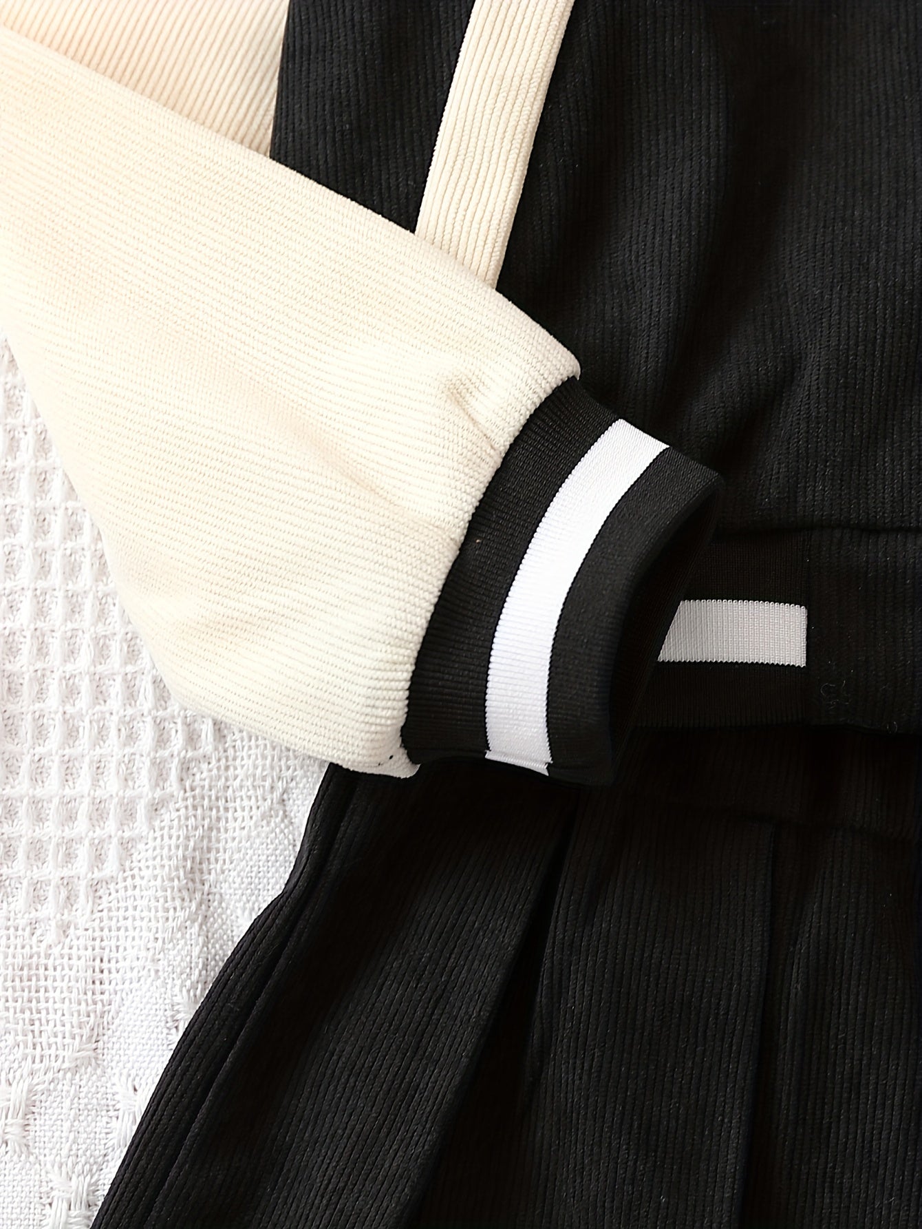 Girls 2-Piece Corduroy Long Sleeve Jacket and Pleated Skirt Set for Fall Winter