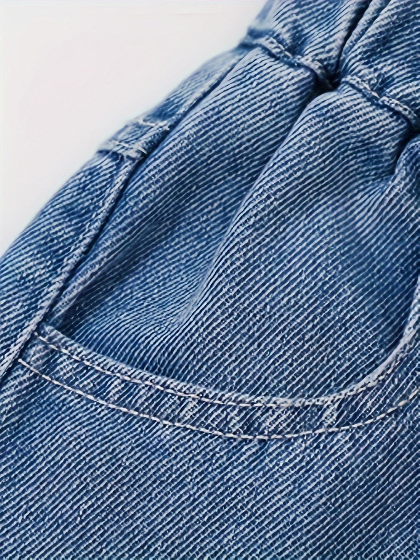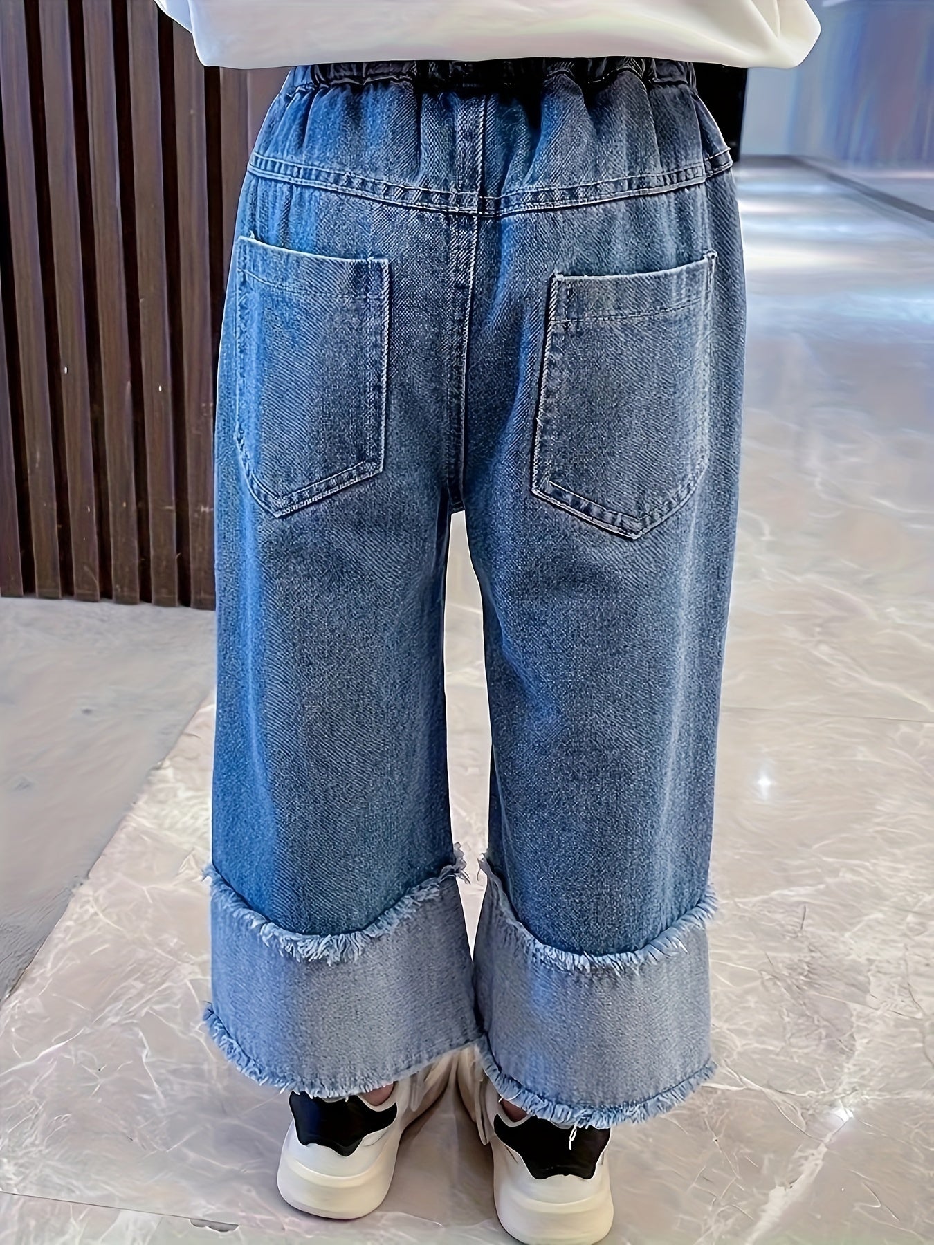 Girls' Kids Jeans Wide Leg Cotton Blend with Bunny Print Elastic Waist Pockets