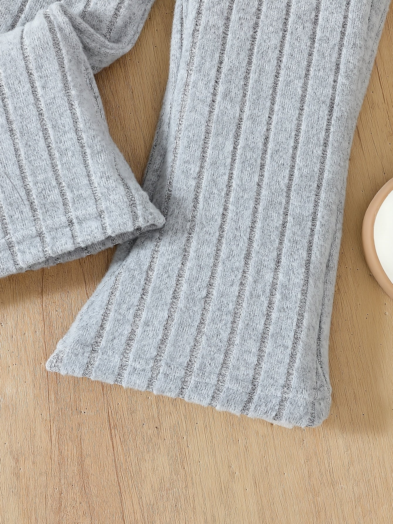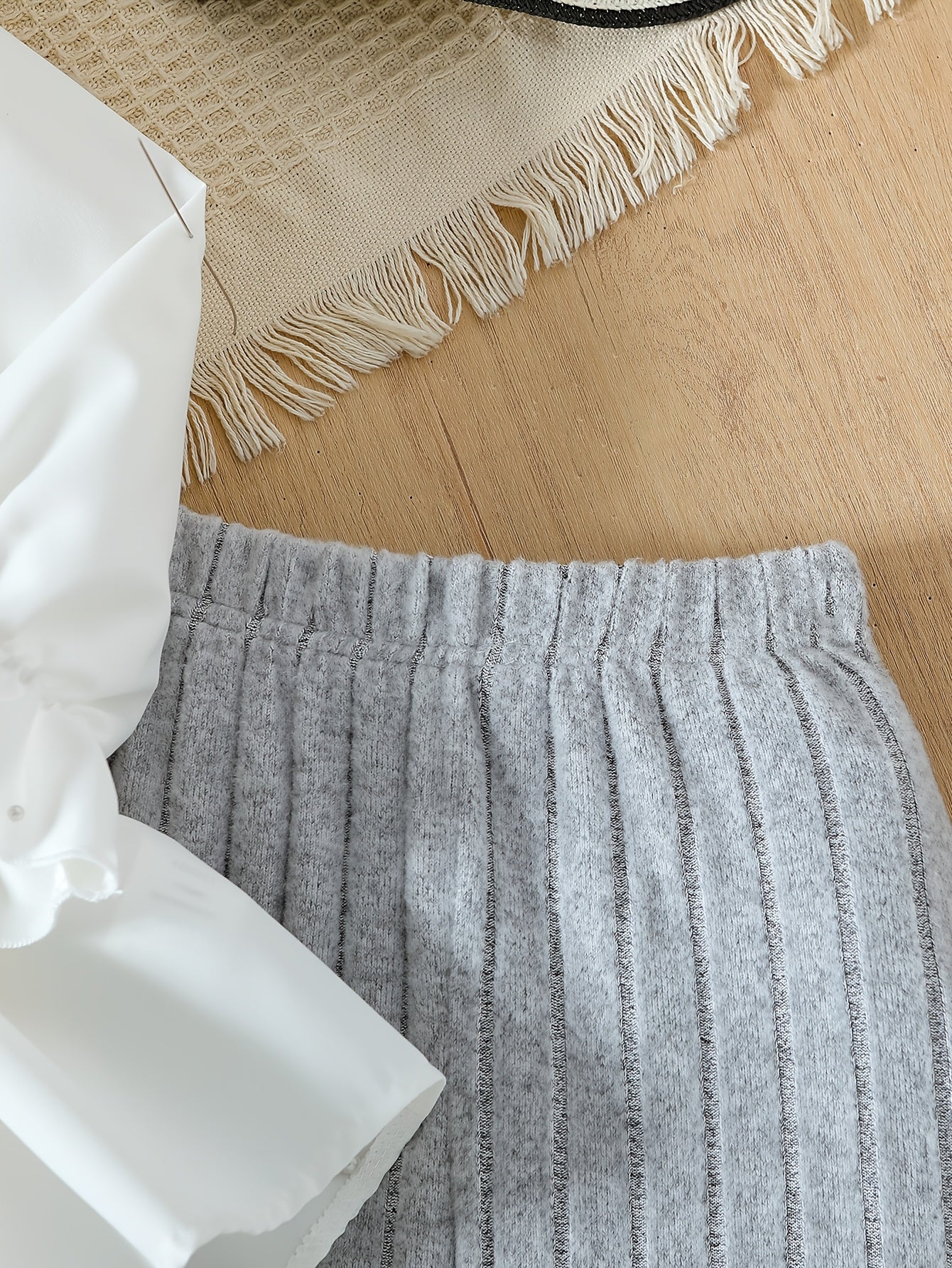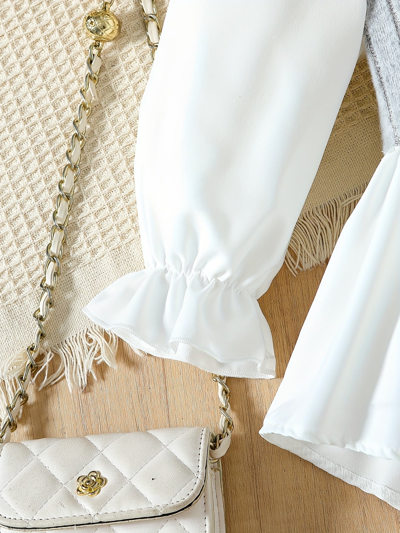 Girls Autumn Two-Piece Set Long Sleeve Collared Shirt and Stretch Pants for Casual and Daily Wear