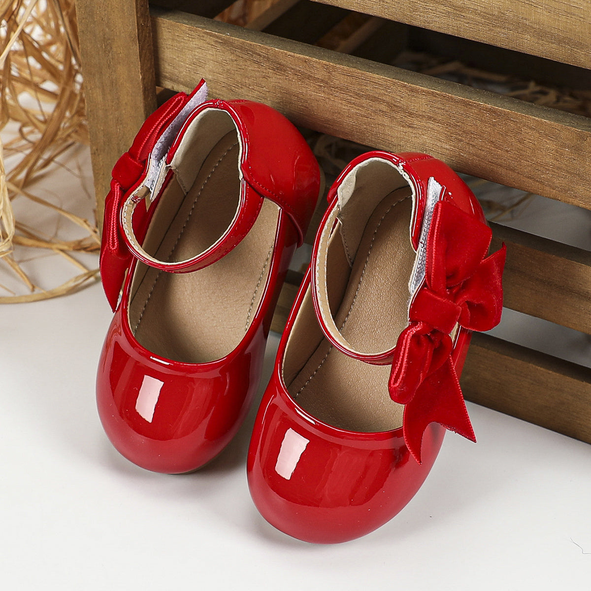 Girls' Casual Mary Jane Shoes with Bow, Lightweight PU, TPR Sole, Adjustable Strap