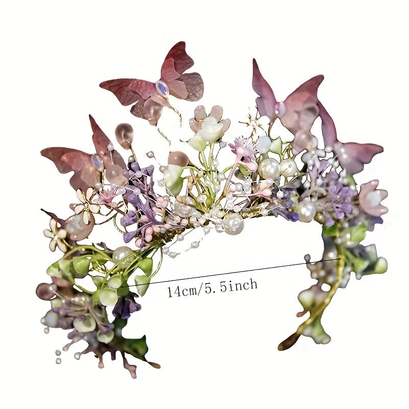 Women's Flower Headband Hair Accessories with Butterfly Decor Faux Pearl Wreath Design
