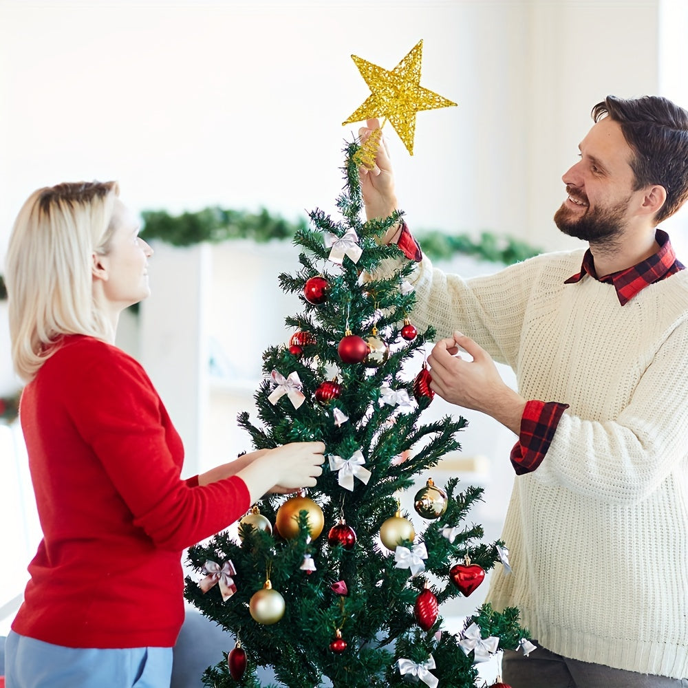 Handcrafted Iron Glitter Star Tree Topper for Christmas and Thanksgiving No-Battery Tabletop or Tree Display Pack of 1