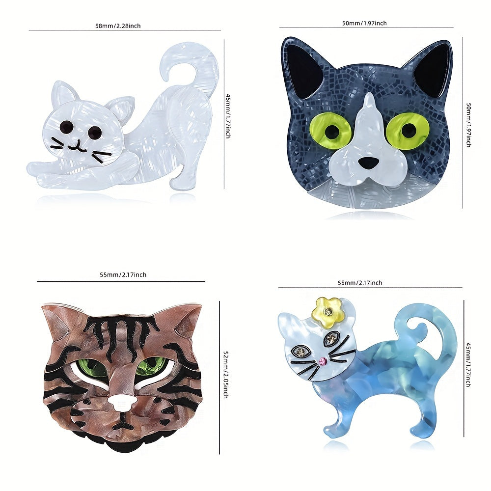 Acrylic Cat Brooch White Gray Blue Floral Design Handmade Jewelry for Women