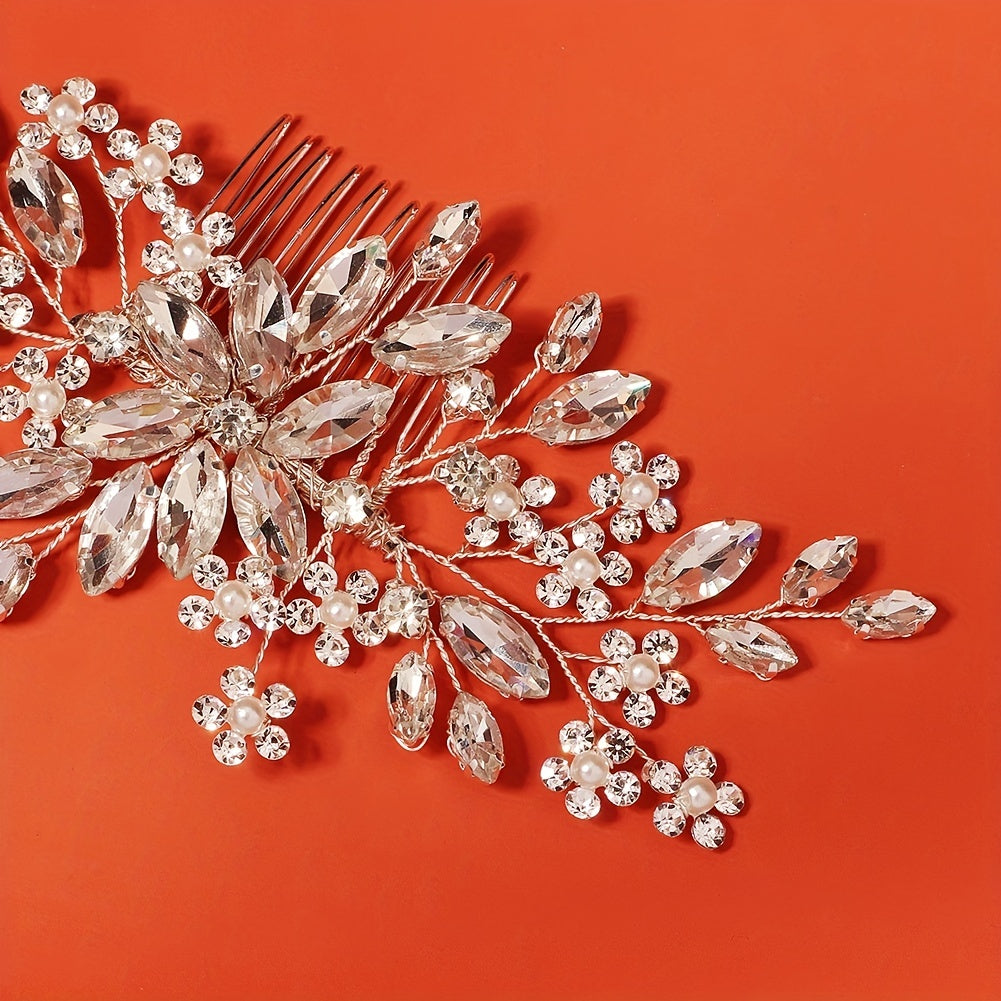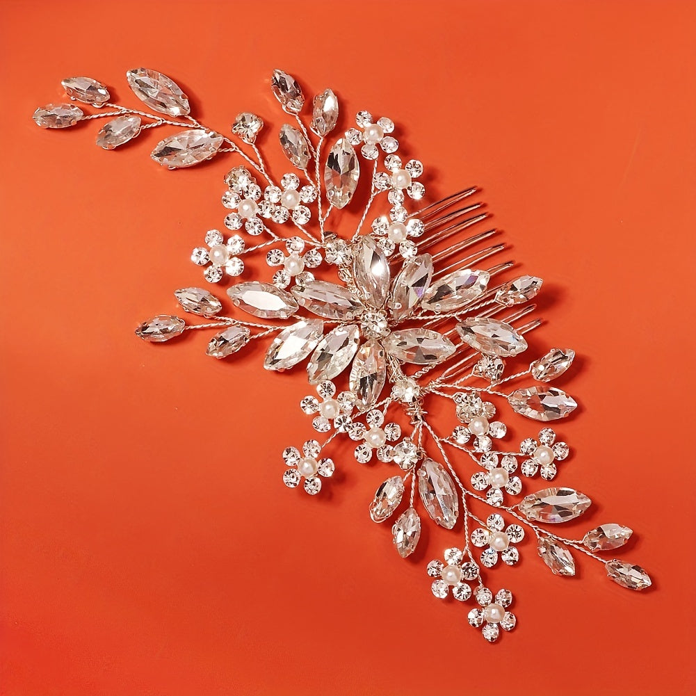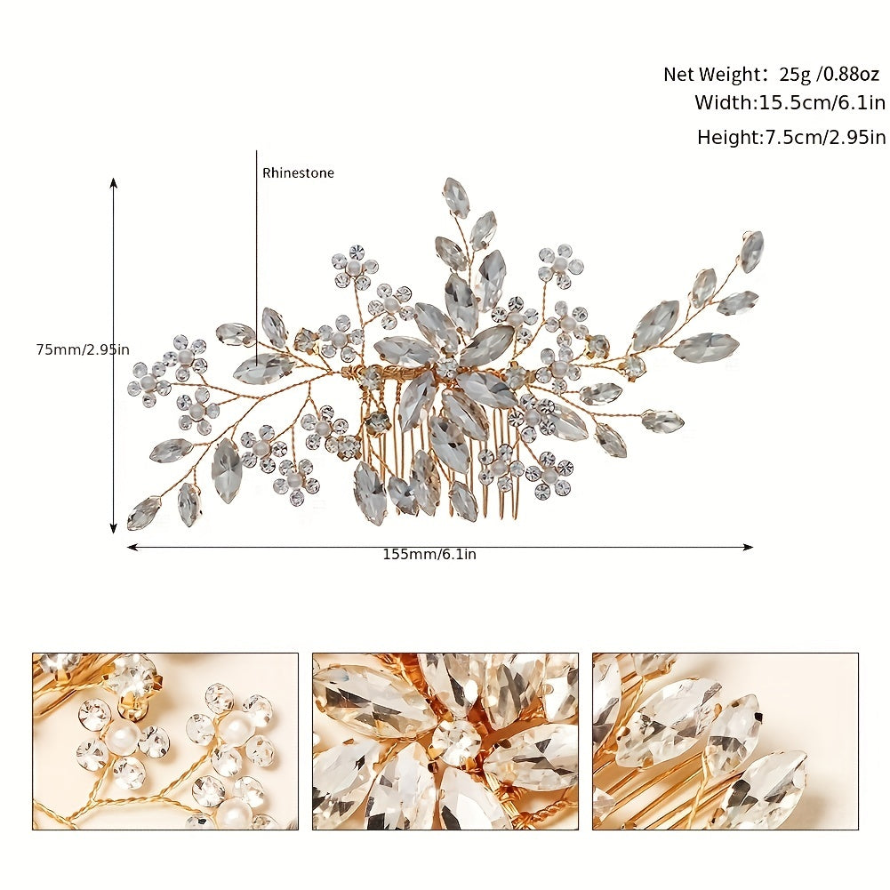 Handmade Flower Hair Comb with Horse Eye Rhinestones for Bridal Wedding Dress Accessories