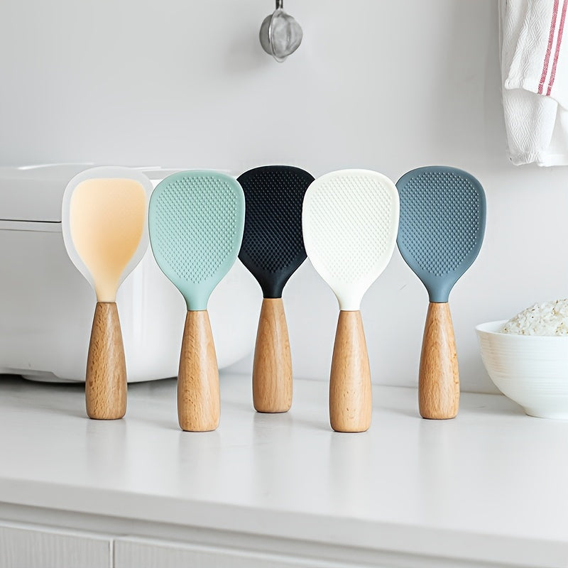 Heat Resistant Silicone Cooking Spoon with Wooden Handle for Non-Slip Kitchen Use
