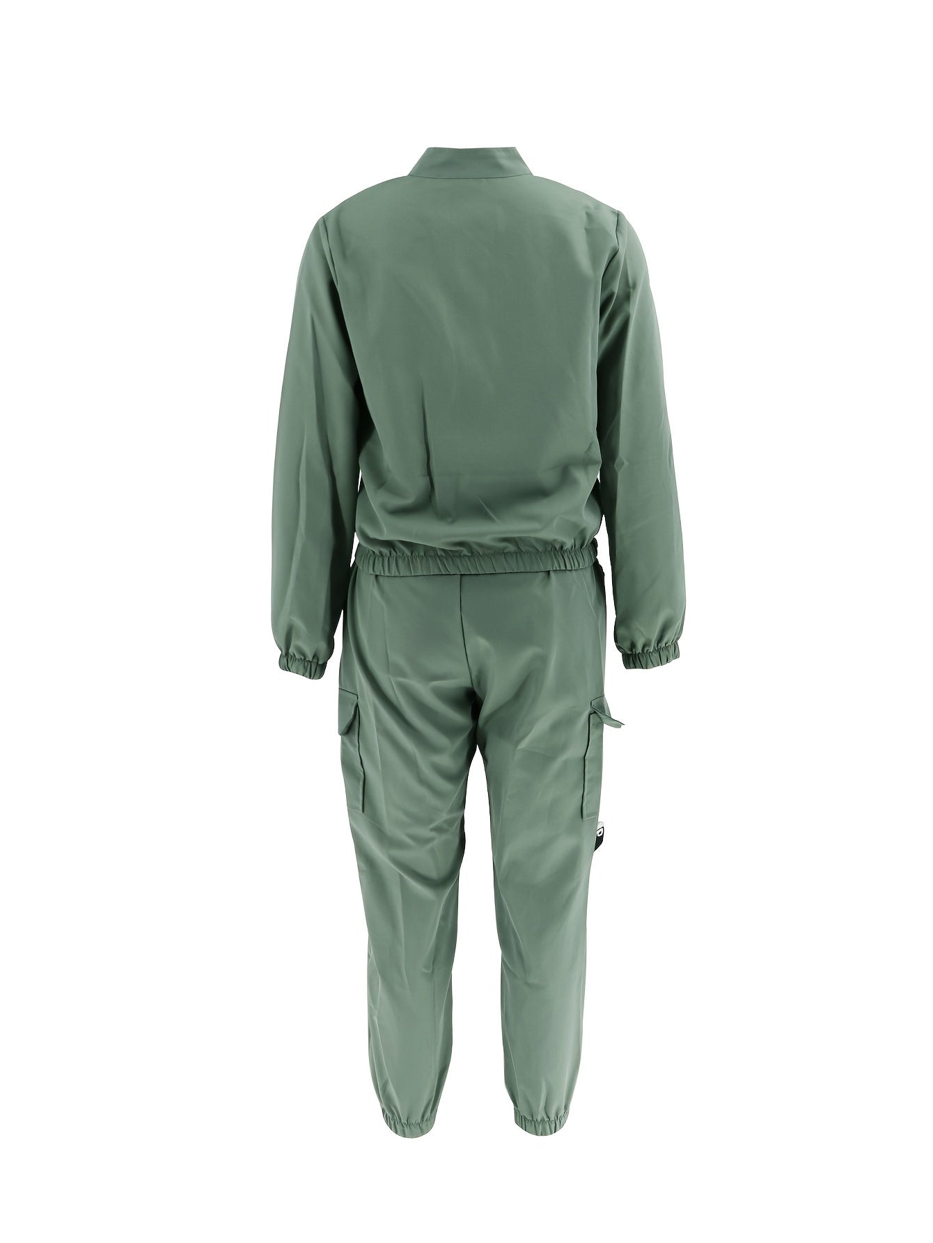 Casual Ladies Two-Piece Suit with Zipper Solid Polyester Elastane Spring Fall