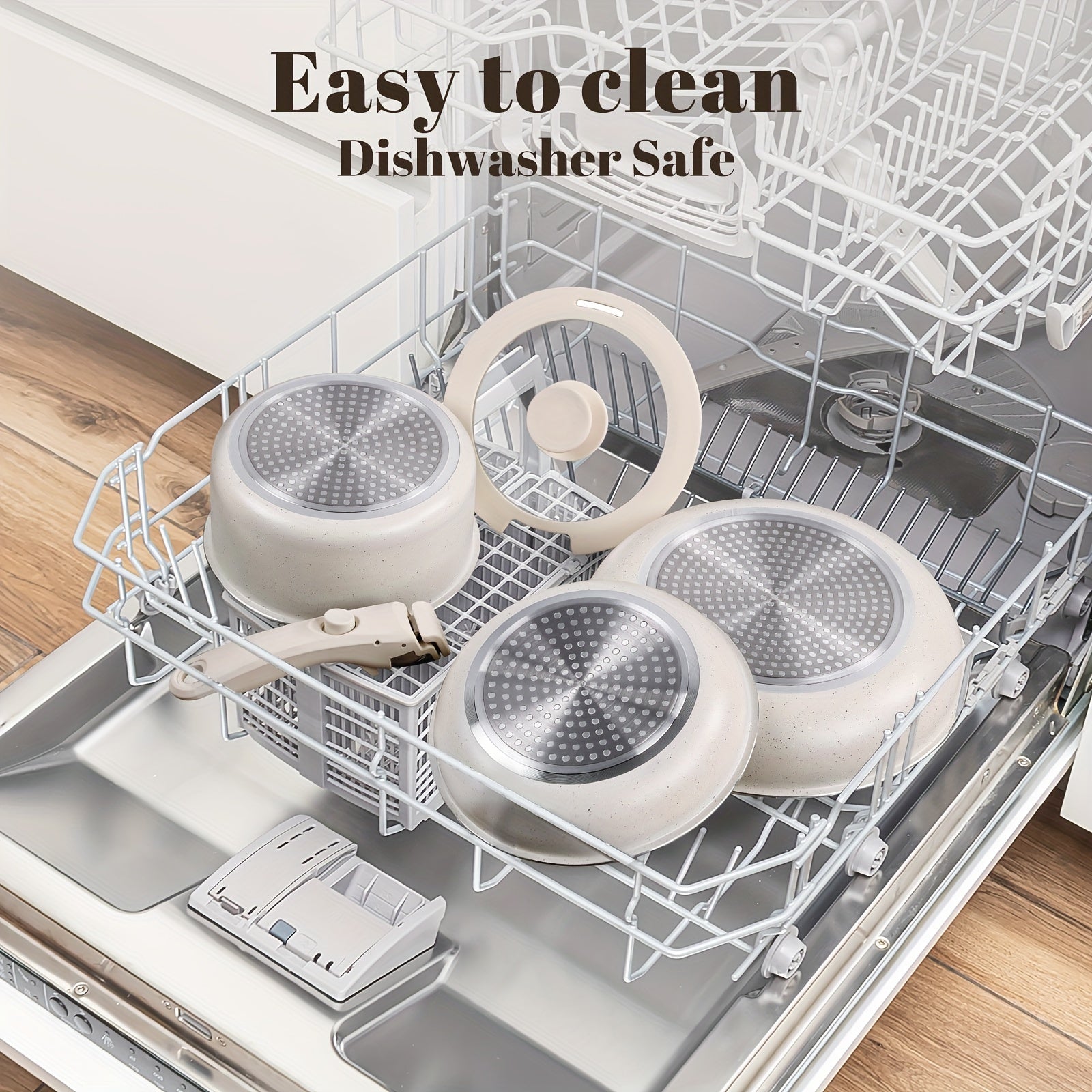 Aluminum Induction Cookware Set Non-Stick Detachable Handle 3 Pots 3 Pans Dishwasher Safe