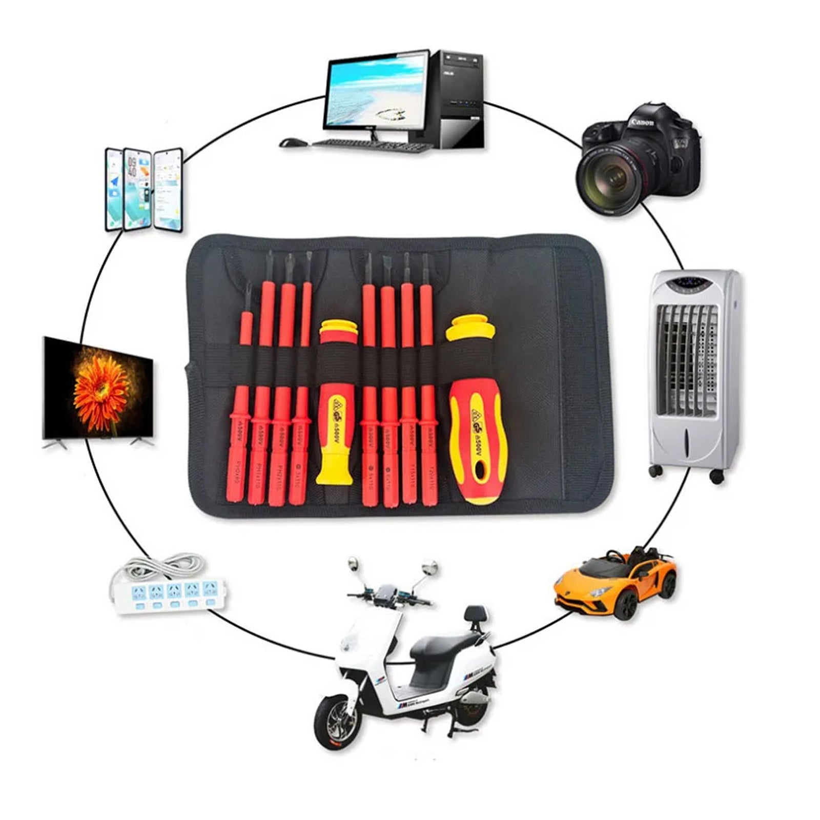 Insulated Screwdriver Set with Magnetic Hex and Cross Tips for Household Electricians 10-20 Pieces