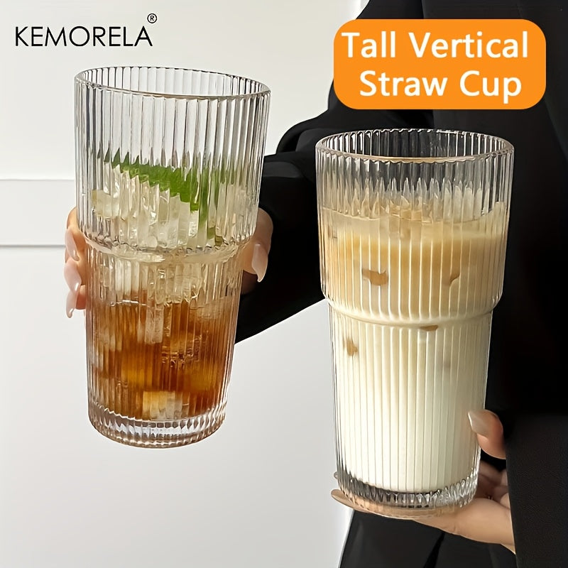 Large Capacity Vertical Striped Glass Cups for Cold Drinks Juice Coffee Water