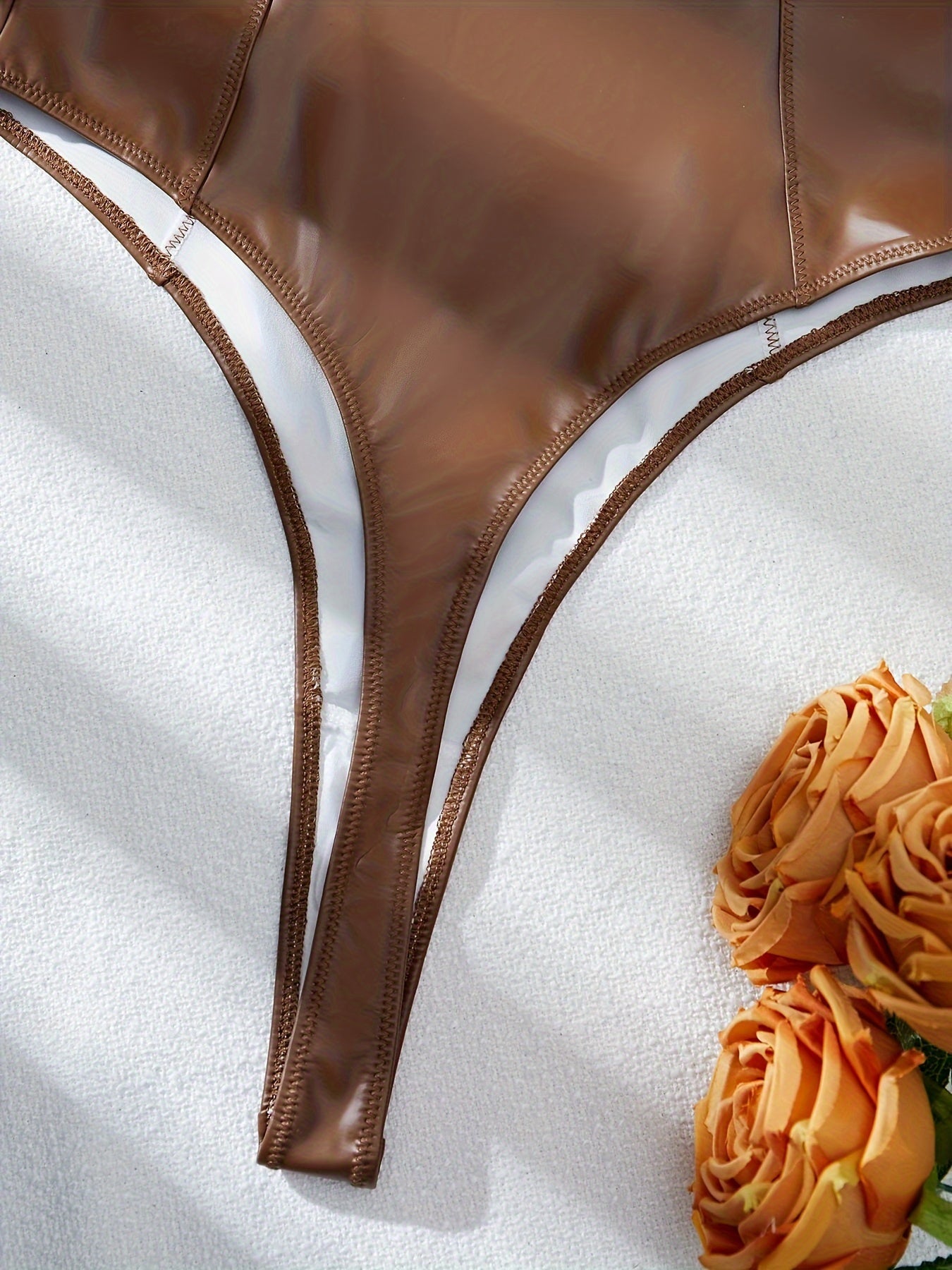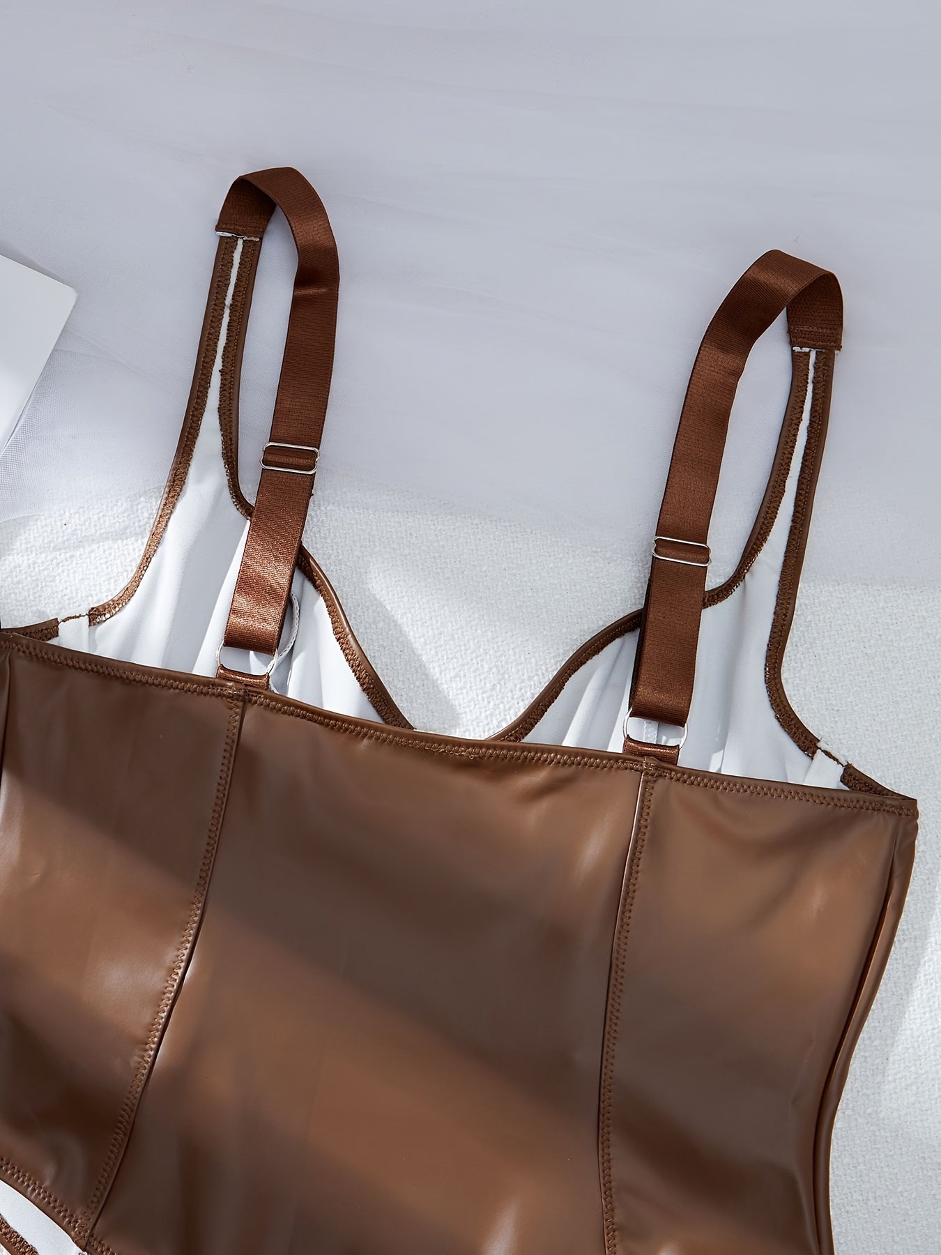 Women's Khaki Deep V Neck Body Suit with Stretch Fabric