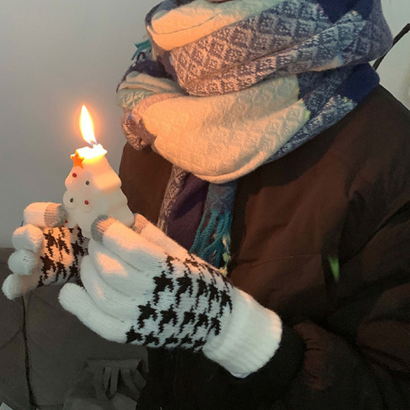 Unisex Knit Gloves with Houndstooth Pattern Touchscreen Winter Gloves Polyester