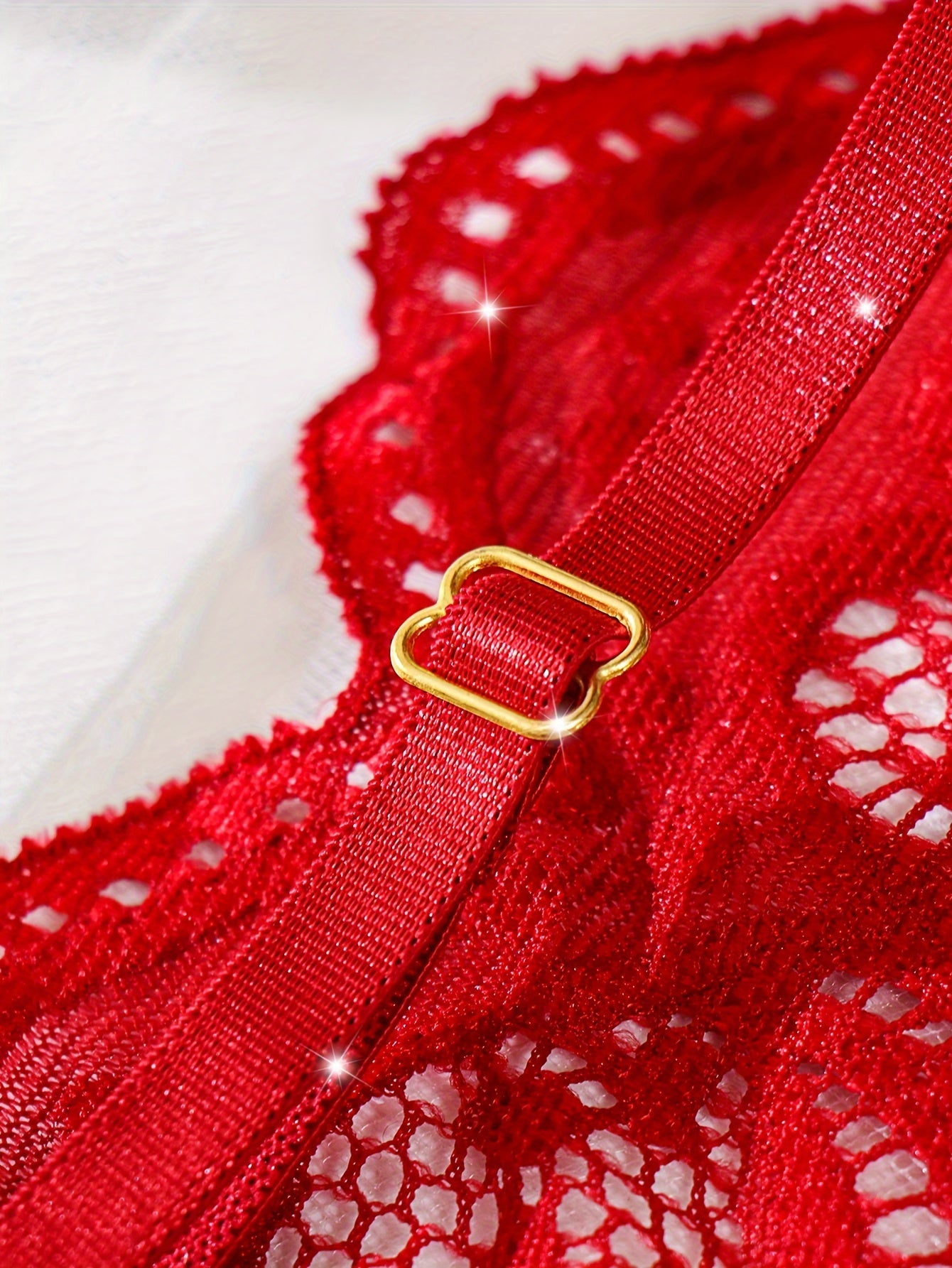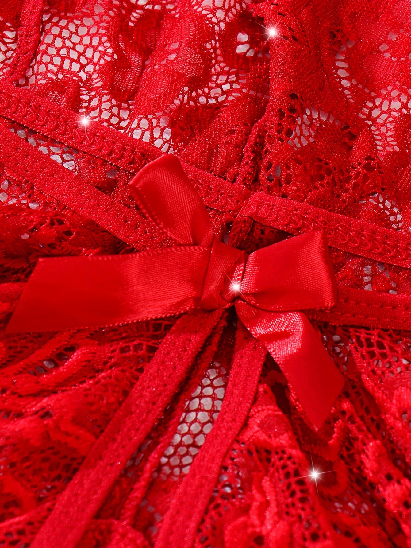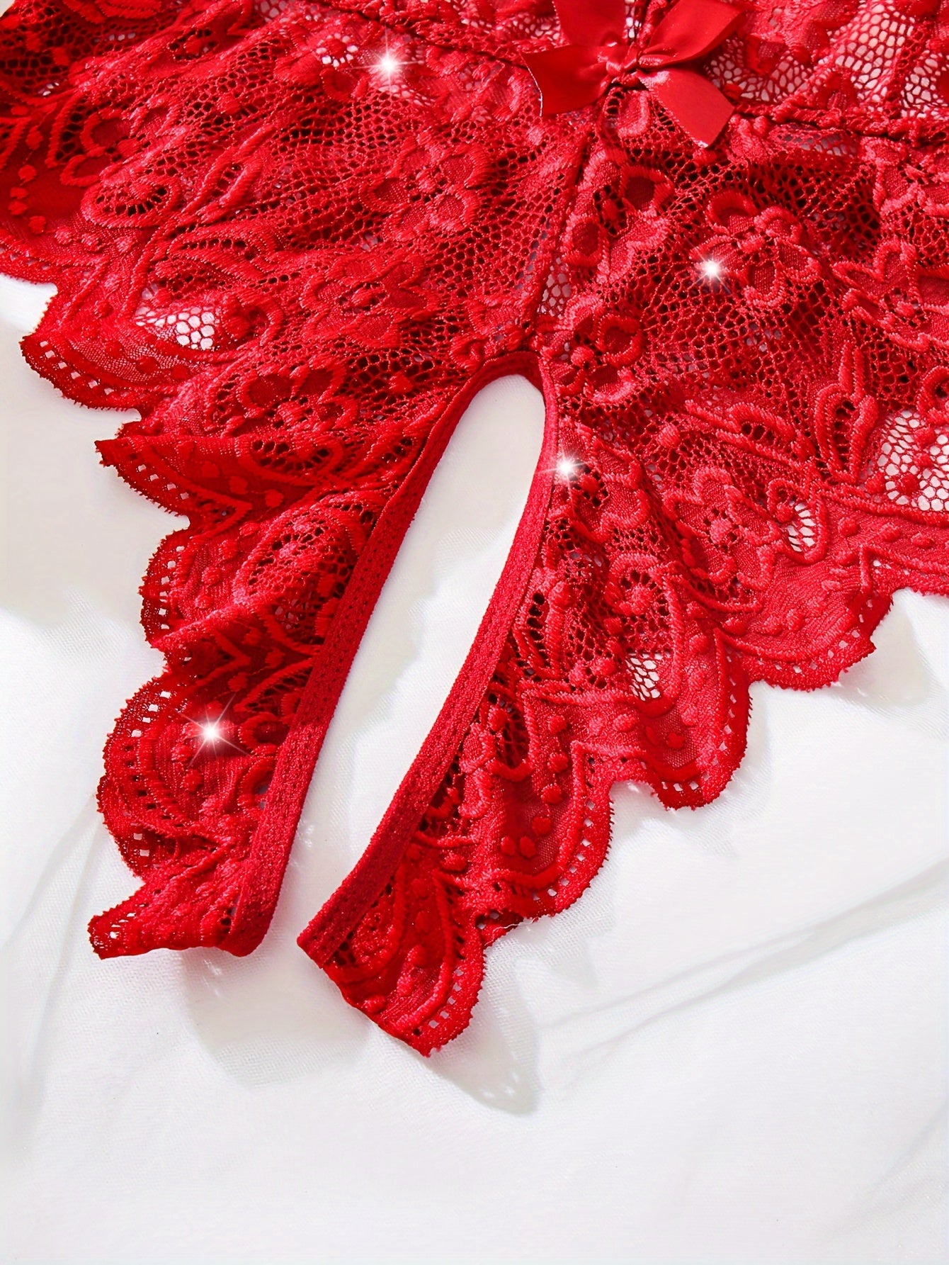 Women's Lace Bodysuit with Open Flaps and Deep V-Neck Backless Lingerie