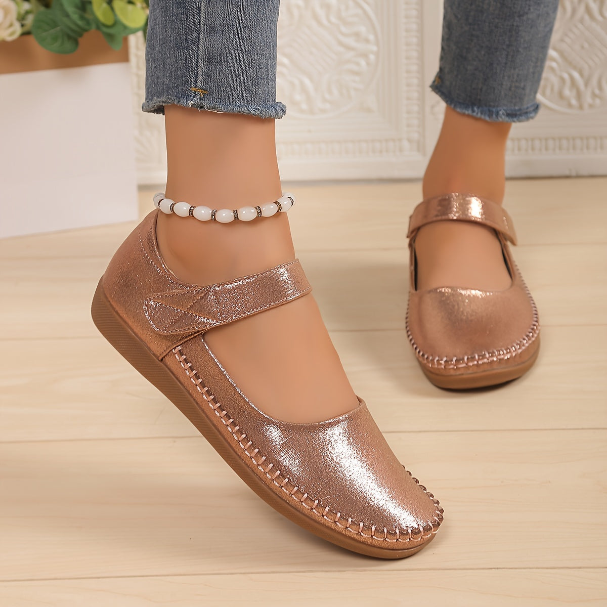 Ladies Flat Shoes Lightweight Comfortable Round Toe Buckle Strap Casual