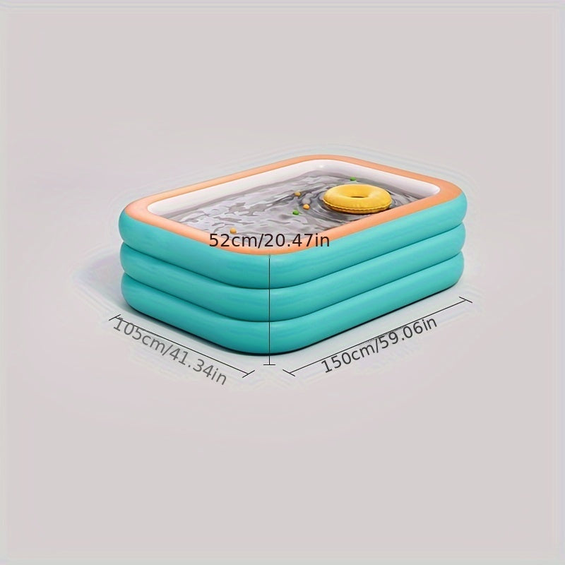 Large Inflatable Adult Pool 3-Layer Durable PVC Green and Orange Portable Summer Fun