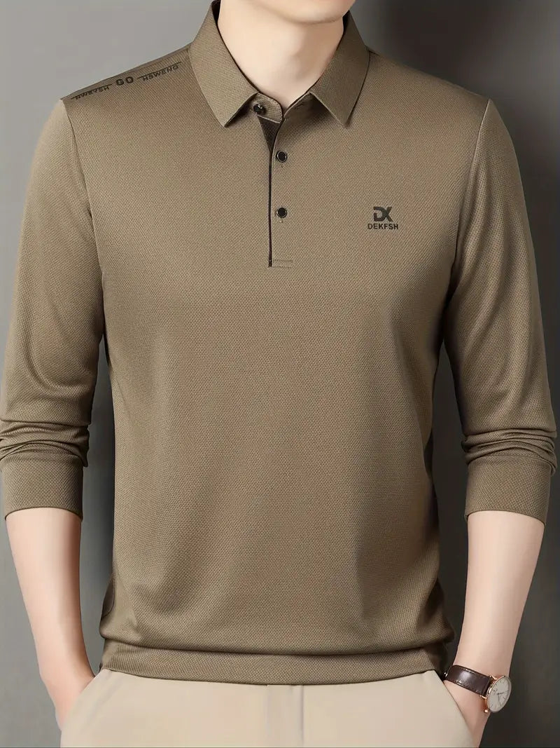 Men's Breathable Polyester Shirt with Letter Print for Golf and Outdoor Activities