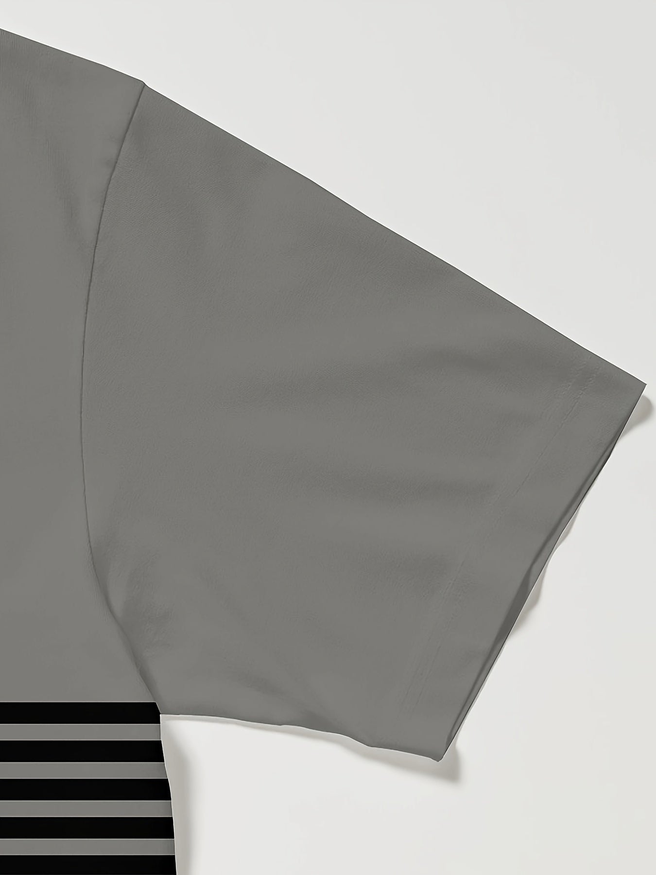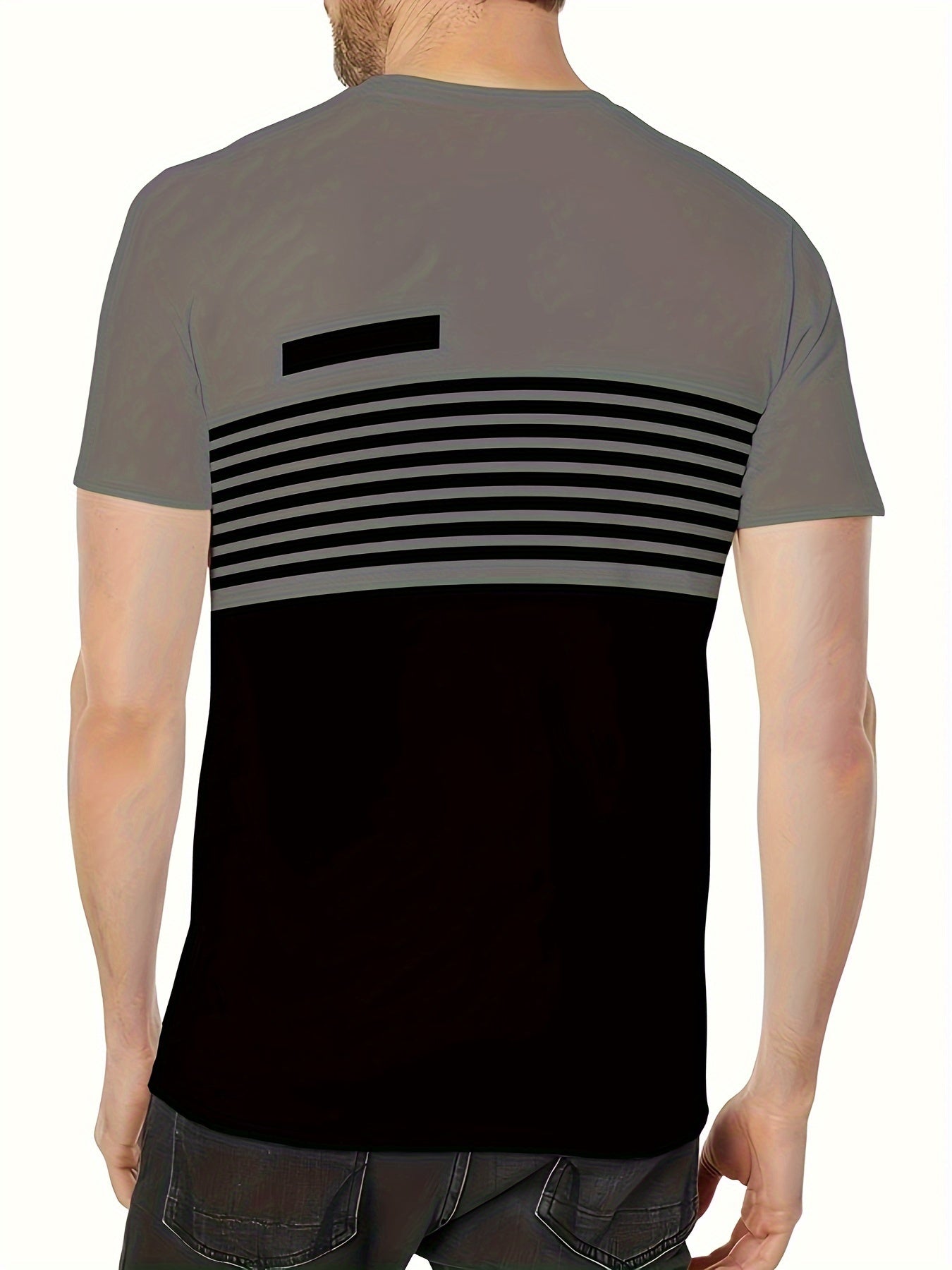 Men's Polyester Crew Neck T-Shirt with Geometric Stripe Pattern Casual Fit