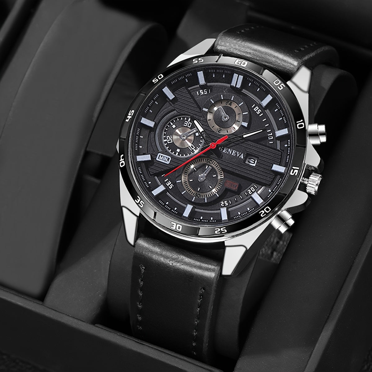 Men's Quartz Watch with Faux Leather Strap Business Style Calendar Non-Waterproof