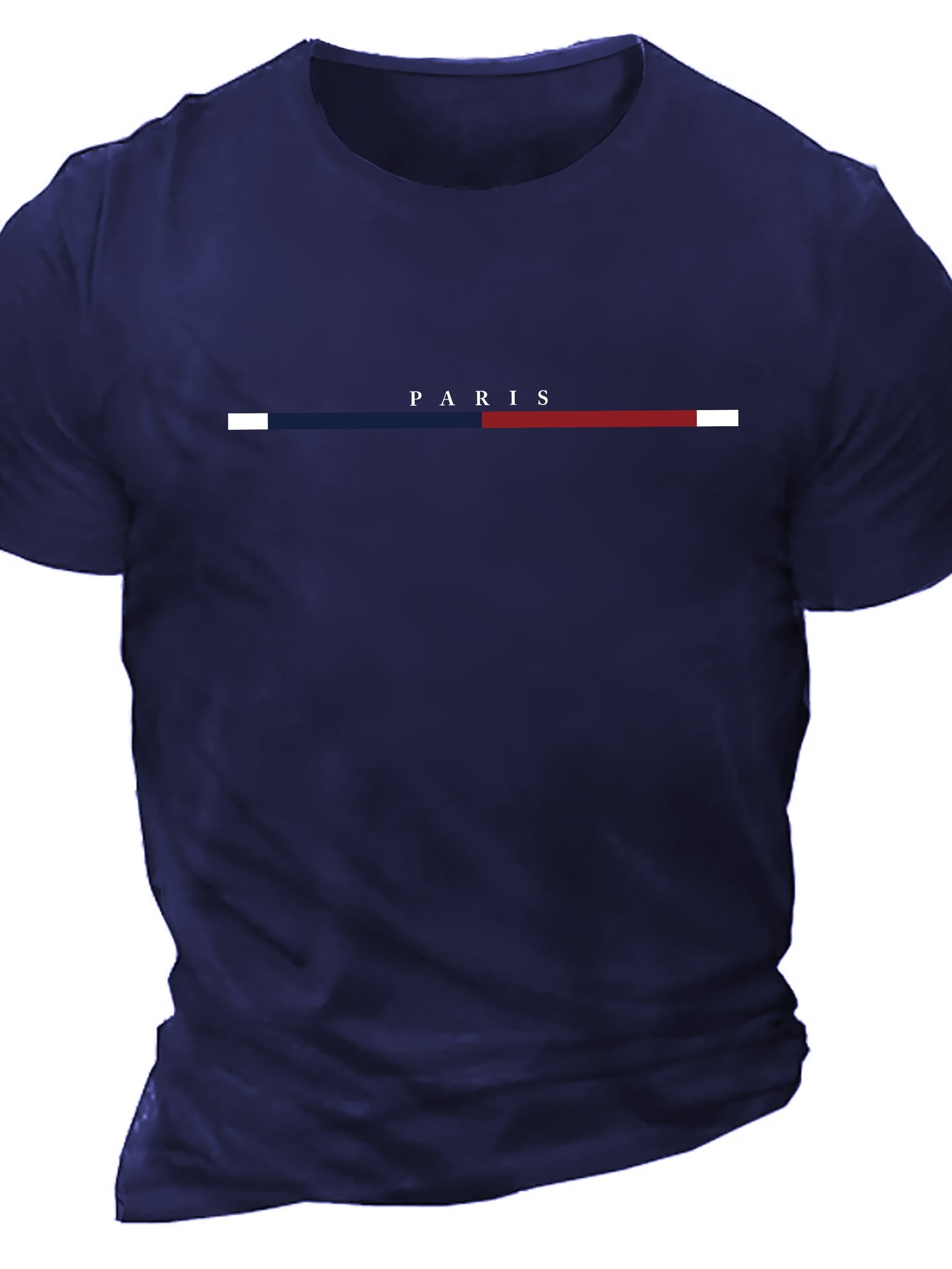 Men's Large Polyester Crew Neck Printed T-Shirt Casual Short Sleeve