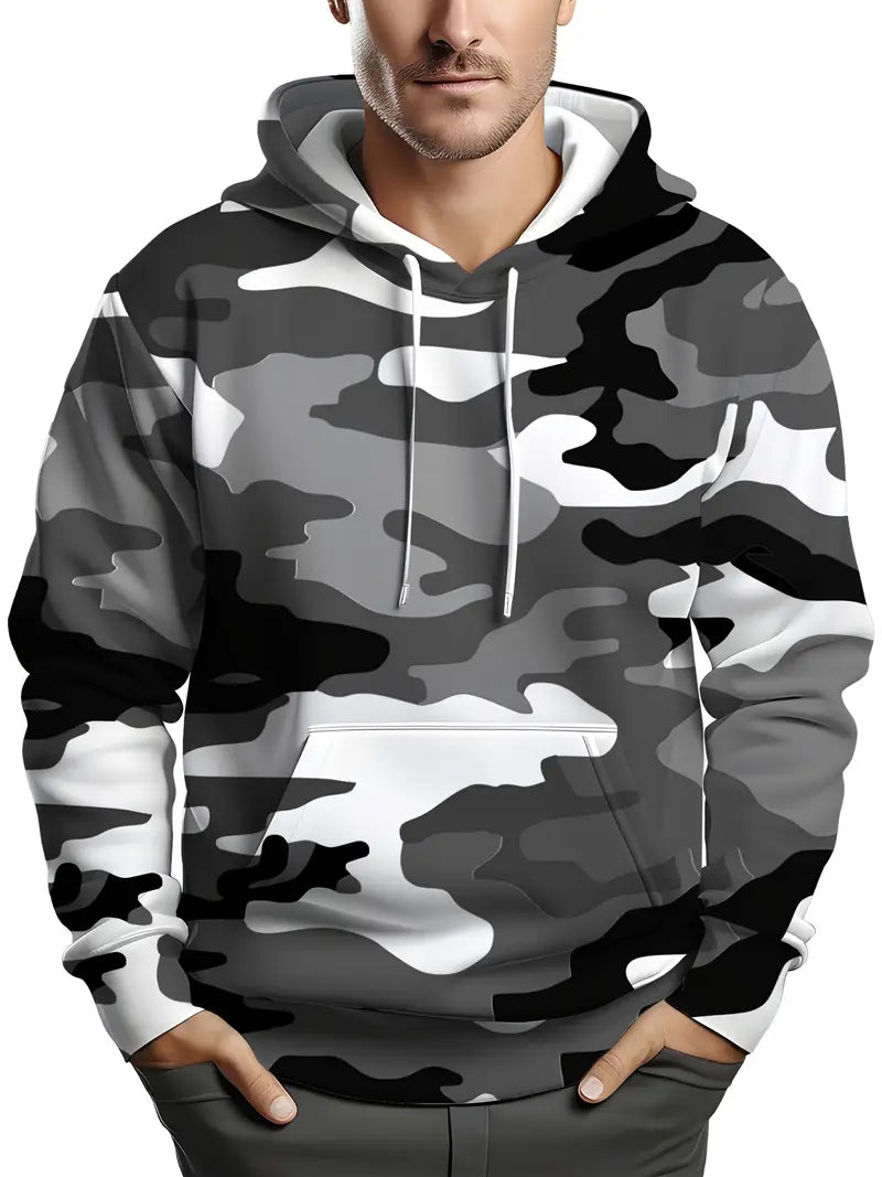 Men's Plus Size Camo Hoodie with Kangaroo Pocket Stretch Fabric Casual Sportswear