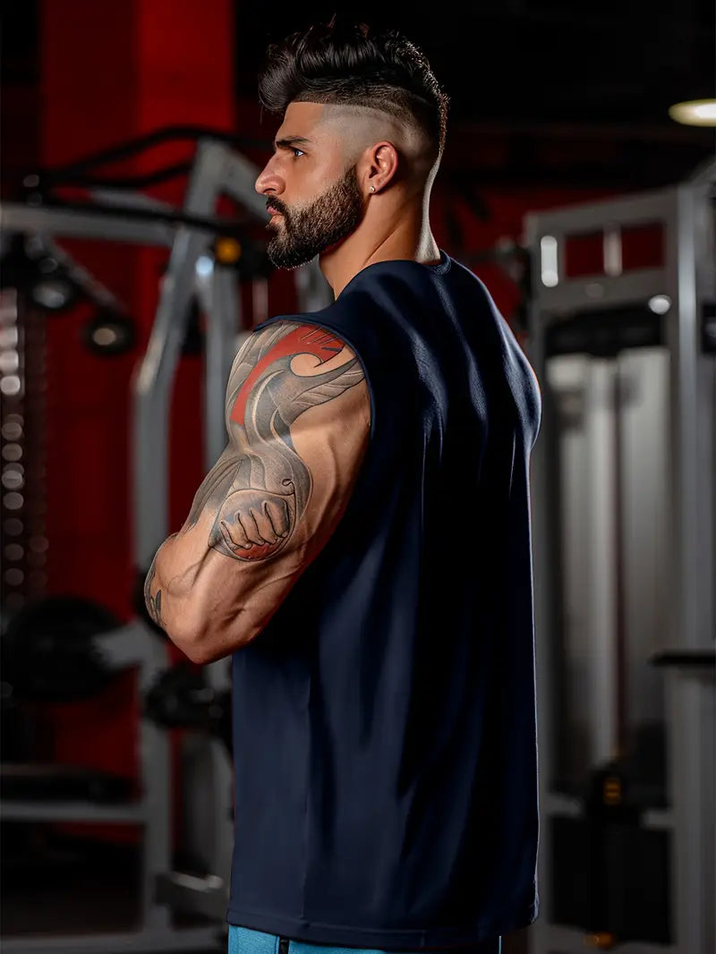 Men's Sleeveless Tank Top with Stripe Pattern Quick Dry Summer Fitness Outdoor Running