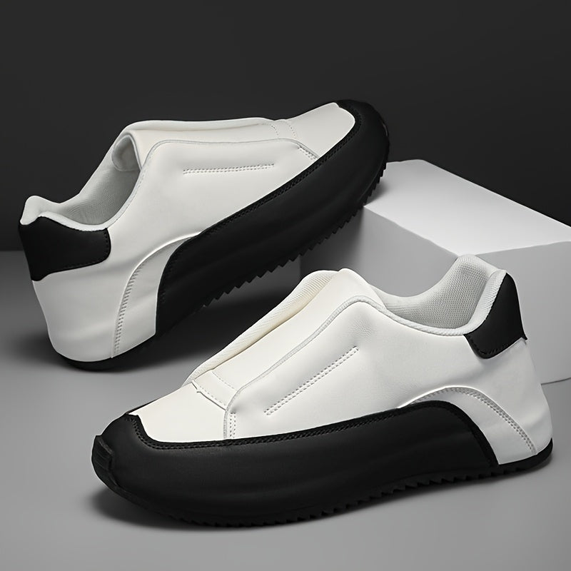 Men's Casual Slip-On Sneakers Black White Thick Sole Height Boosting Low Top Round Toe All-Season