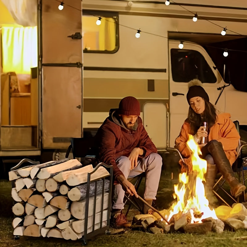 Metal Firewood Rack Stand with Adjustable Height for Indoor Outdoor Log Storage