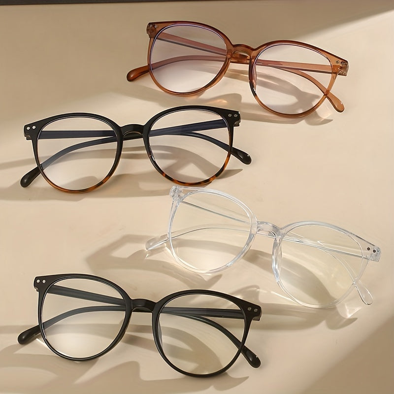 Unisex Minimalist Computer Glasses with Clear Round Lenses Lightweight 4-Piece Set