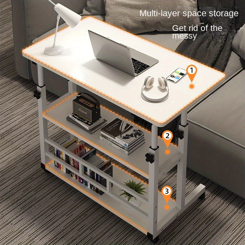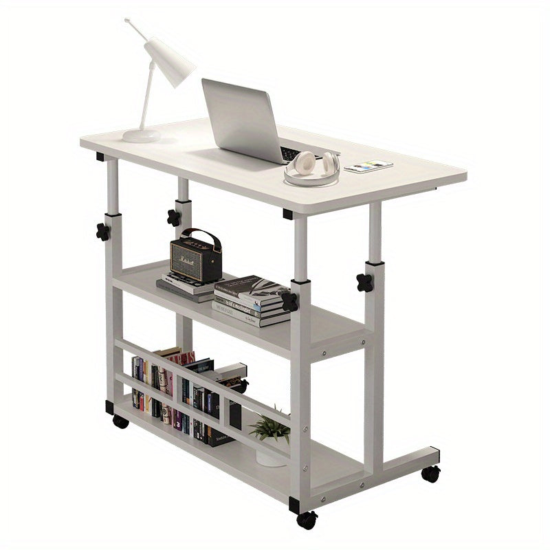 Adjustable Height Mobile Computer Desk with Multi-Layer Storage and Casters