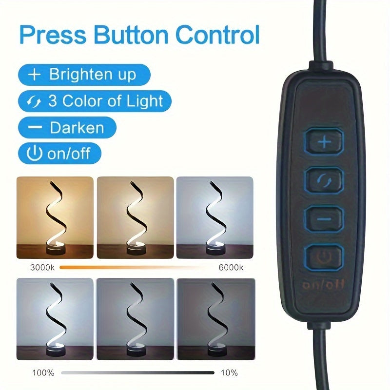 Modern Metal Spiral Table Lamp with Adjustable Lighting and USB Power for Bedroom Study Living Room