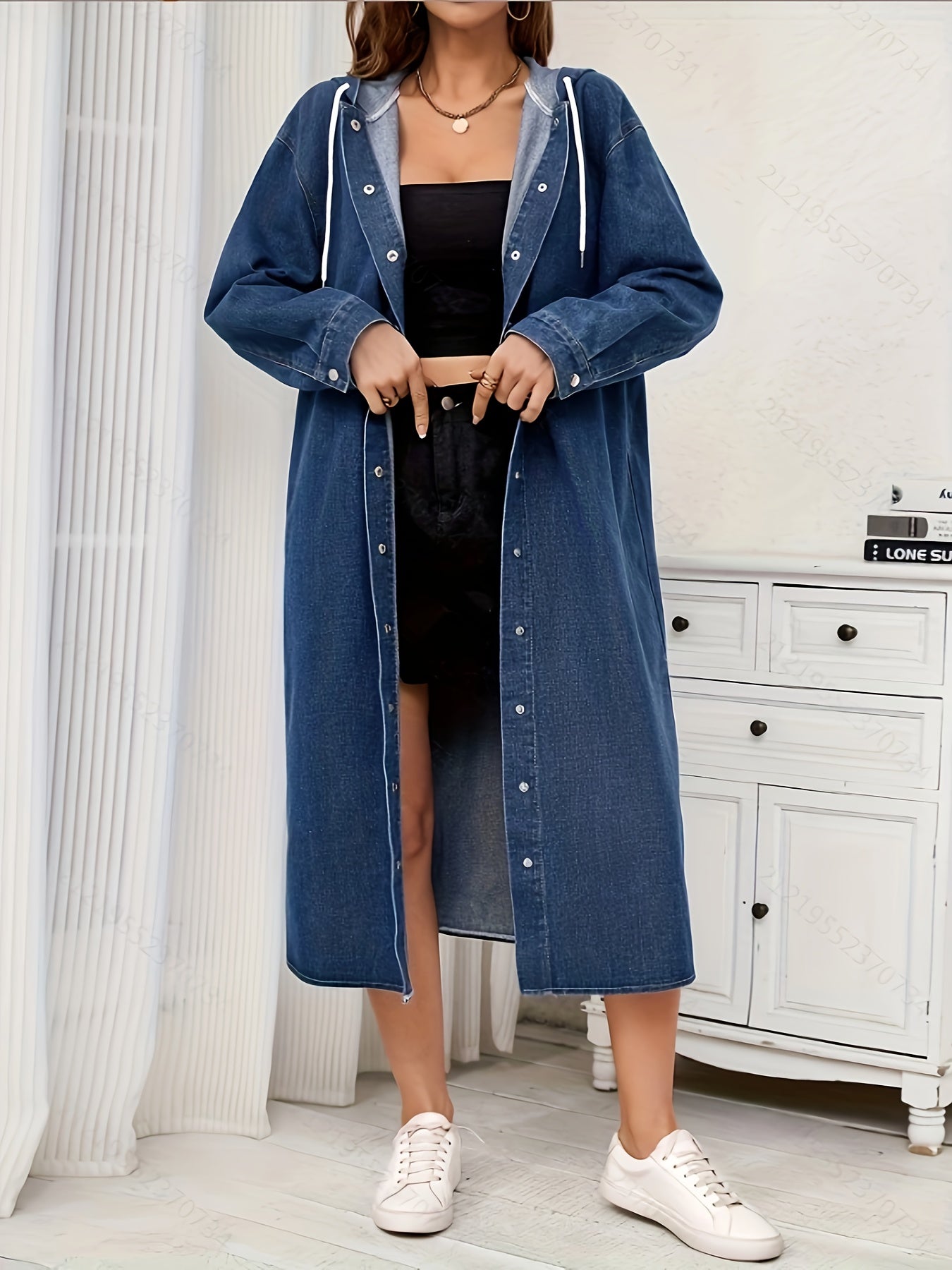 Women's Long Hooded Denim Jacket Casual Woven Spring Fall Outerwear